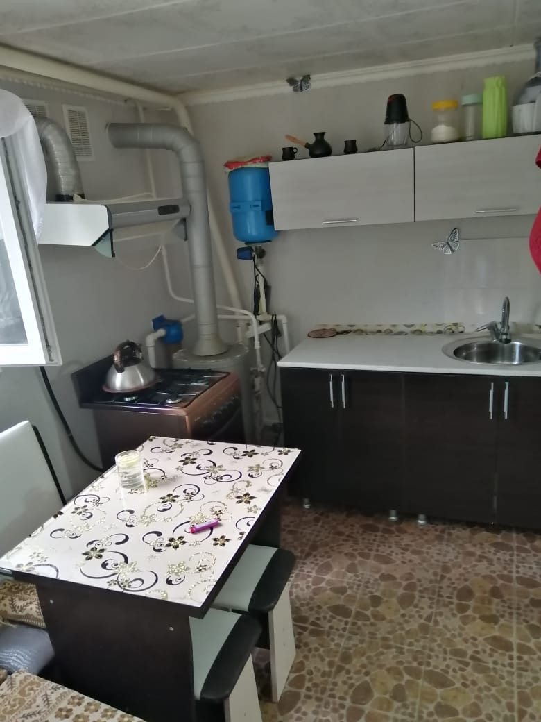 Продаю дом 1970 г.п. Общая площадь 29.4 кв.м. на земельном участке 12 соток. Фундамент: бетон. Материал стен: саман. Материал крыши: шифер. МПО. В доме: прихожая, зал и комната. Остается вся мебель. Приборы учета: газ, свет, вода. Отопление: газовый котел. Водоснабжение: центральное и колодец. Канализация: септик. Дополнительные постройки: хорошая блочная газифицированная жилая кухня, в ней расположен сан/узел, кирпичная баня, хоз/блок. Покрытие двора: бетон. Есть заезд для машины. На участке плодовые деревья ( яблоня, персик, абрикос, вишня), виноград.  Собственник один. Реальному покупателю хороший торг. Ближайшая школа № 17. три детских сада, рядом с домом автобусная остановка.