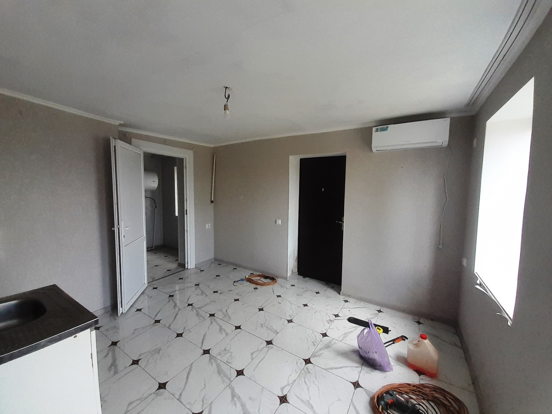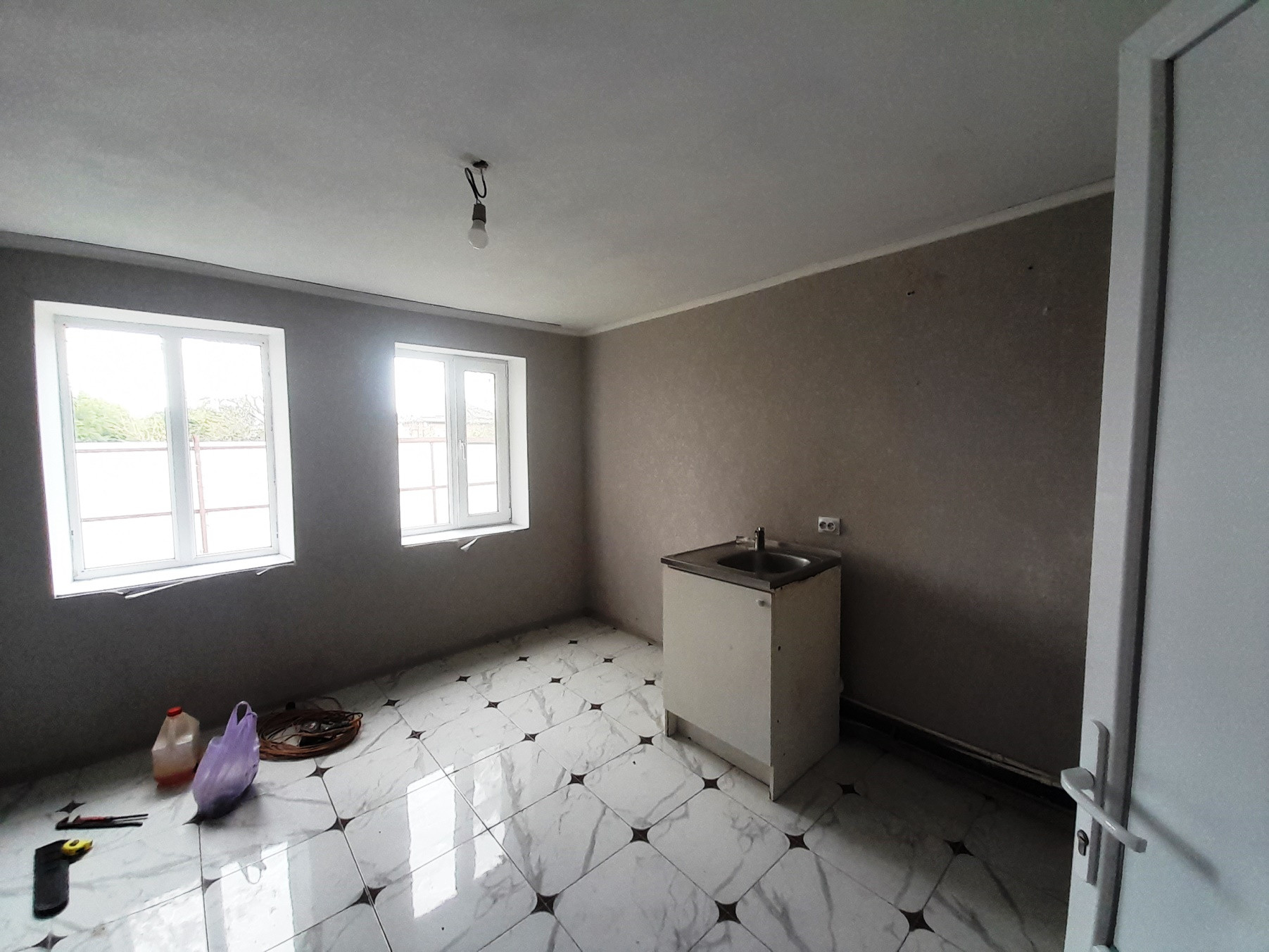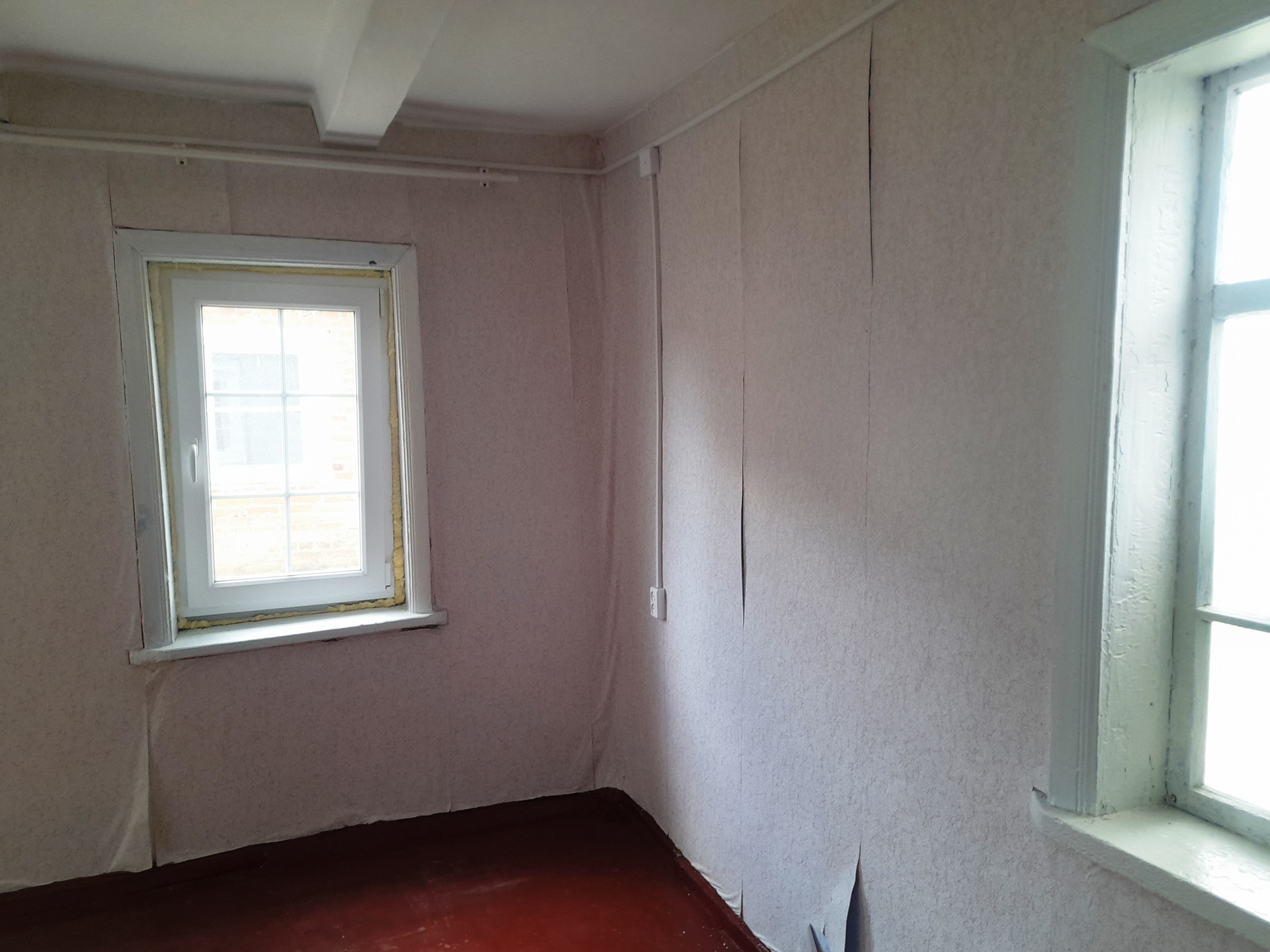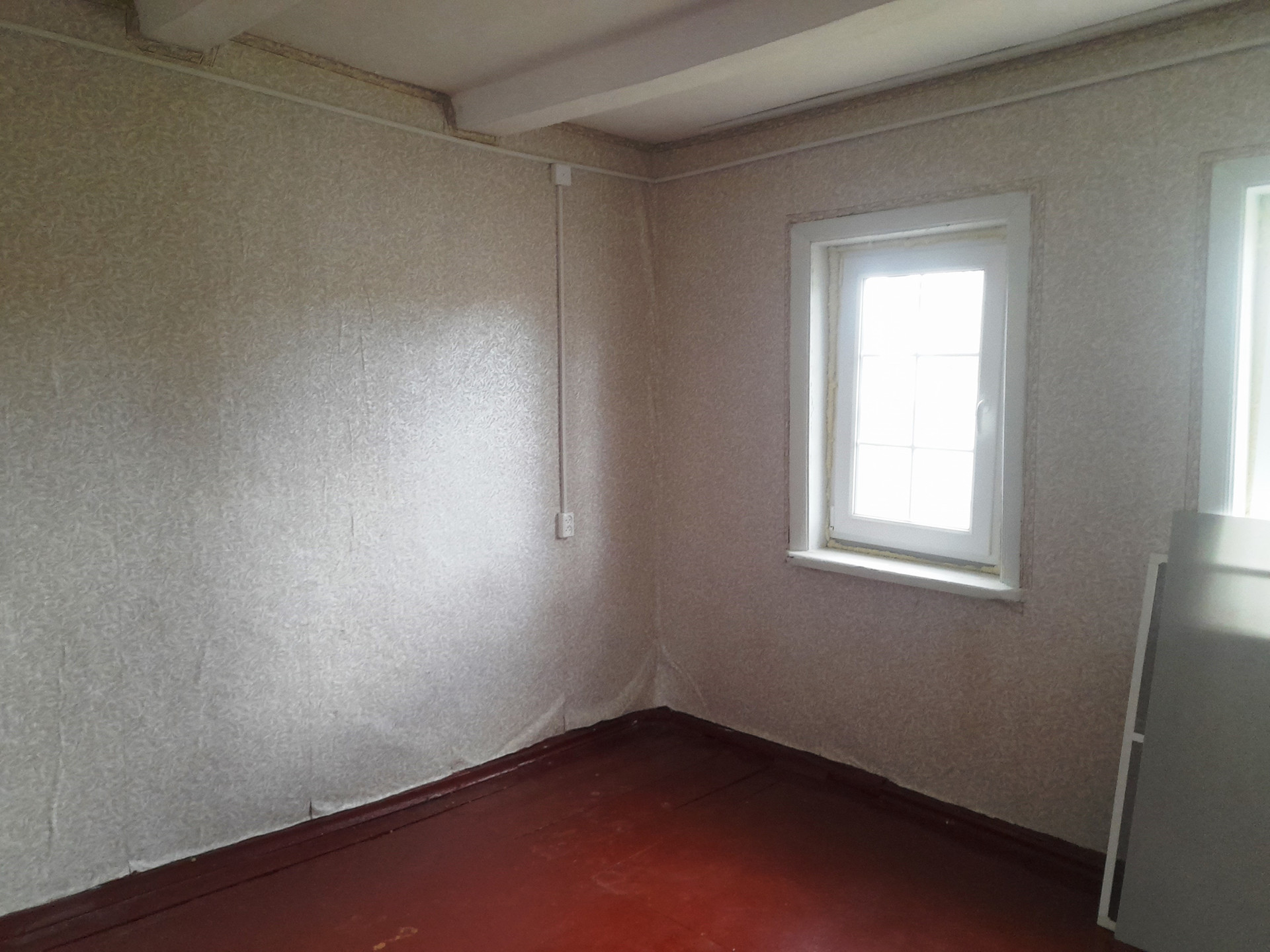 В доме: три комнаты, две спальни изолированные, одна проходная,  прихожая,  деревянный пол, пластиковые окна. Дом саманный обложен плиткой, теплый, отопление - галанка.