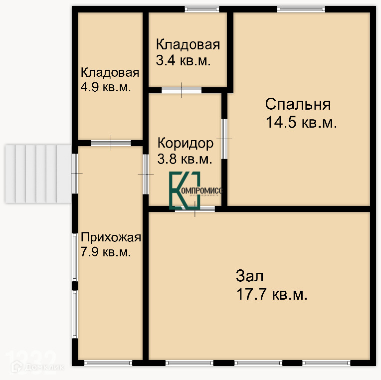 Кухня и сан. узел в отдельном помещении.