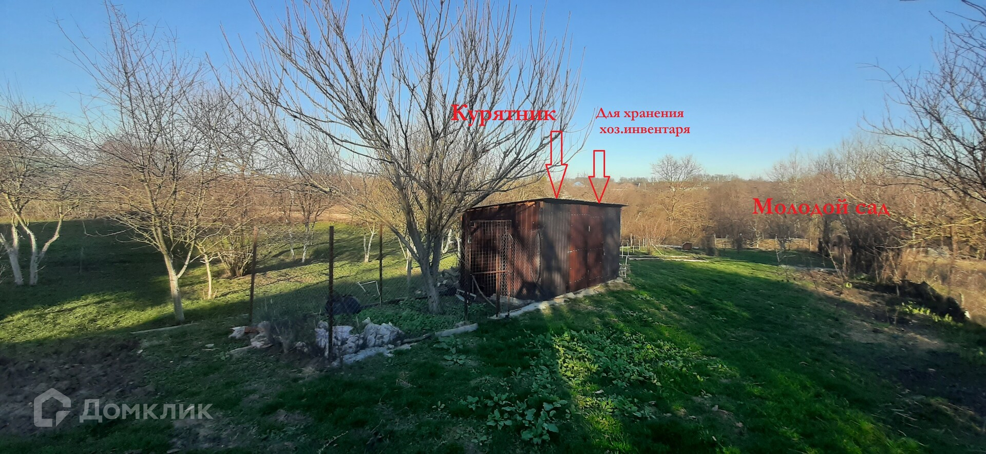Участок ровный ухоженный с садом (яблоня, груша, айва, вишня, черешня, виноград), обновлен молодыми плодовыми деревьями.
