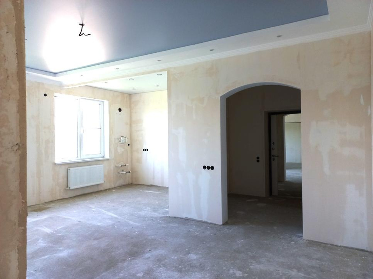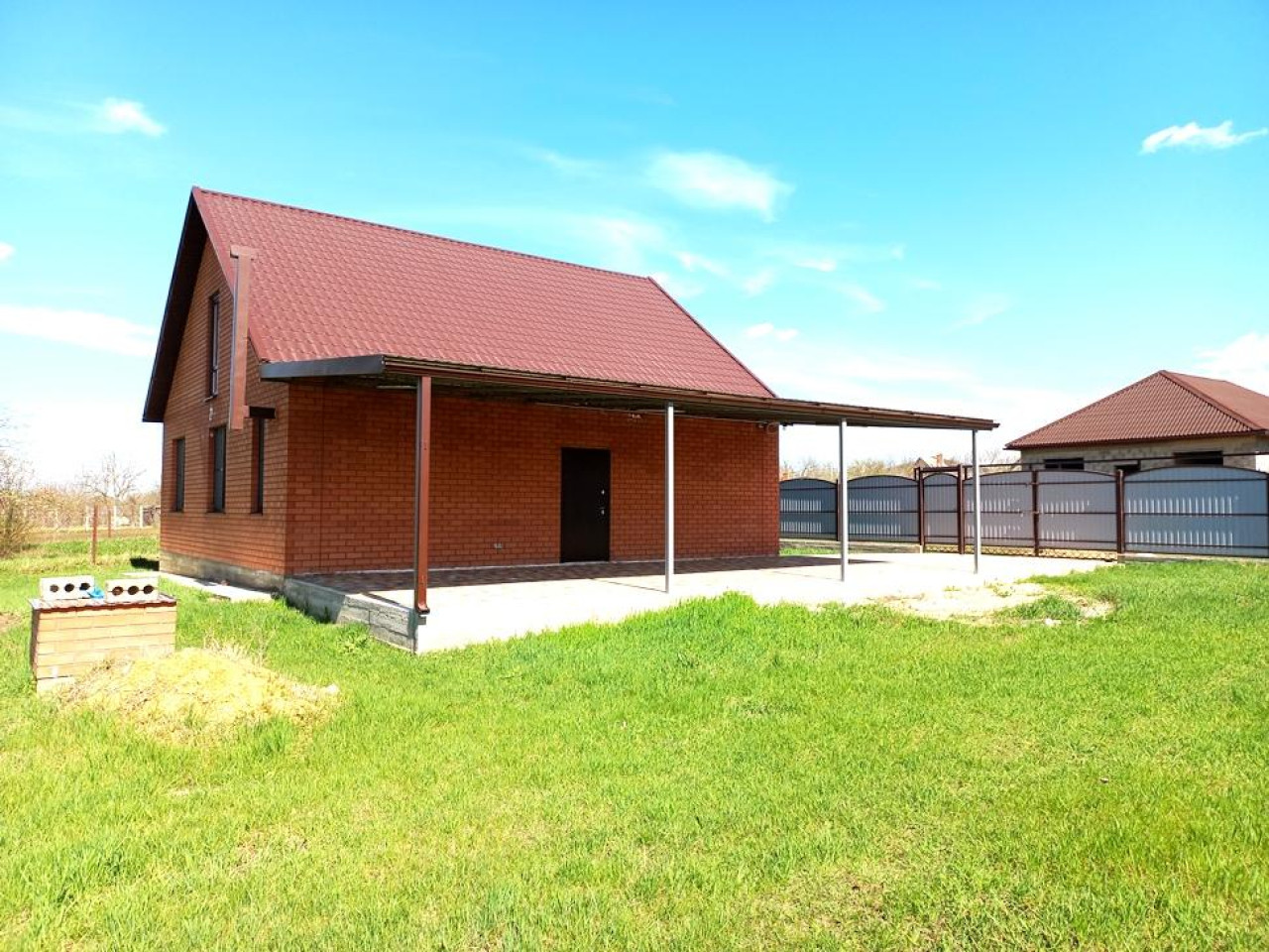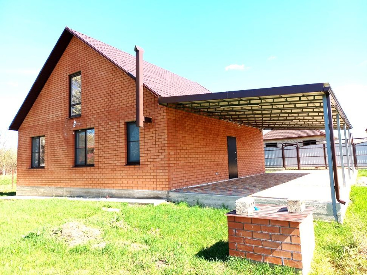 Новый кирпичный дом 2023 года с чистовой отделкой на участке 12 сот. В доме три изолированные комнаты, просторная кухня-гостинная и прихожая с натяжными потолками, стены готовы к поклейке обоев , тёплый пол в кухне, санузле и прихожей. На потолке в кухне над рабочей зоной стоят точечные светильники, сразу предусмотрены карнизы. Вам осталось выбрать по своему вкусу обои, ламинат и кафель и в течении 2 х недель вам сделают ремонт. Есть газовый котёл, оформление будет сразу на новых хозяев. Во дворе брусчатка, навес, металлопрофильный забор по всему фасаду. Срочная продажа, цена ниже рыночной.
