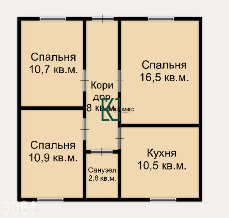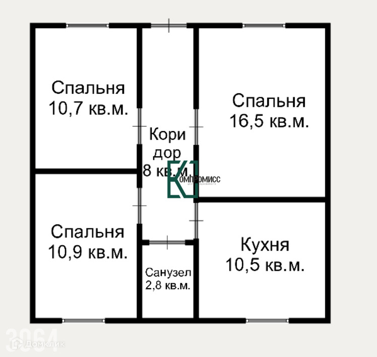 Площадь дома 59,4 кв. м. В доме: 3 изолированные спальни, кухня, санузел совмещенный, просторный коридор.