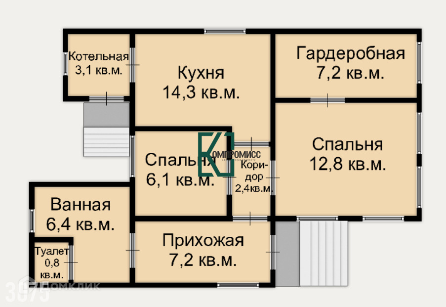 Площадь дома 60,3 кв. м. В доме: 2 спальни, гардеробная (или кабинет ) кухня, совмещенный санузел, котельная, коридор, прихожая, кладовая. Два выхода из дома на участок.