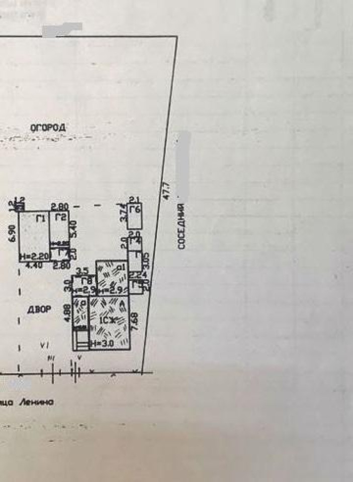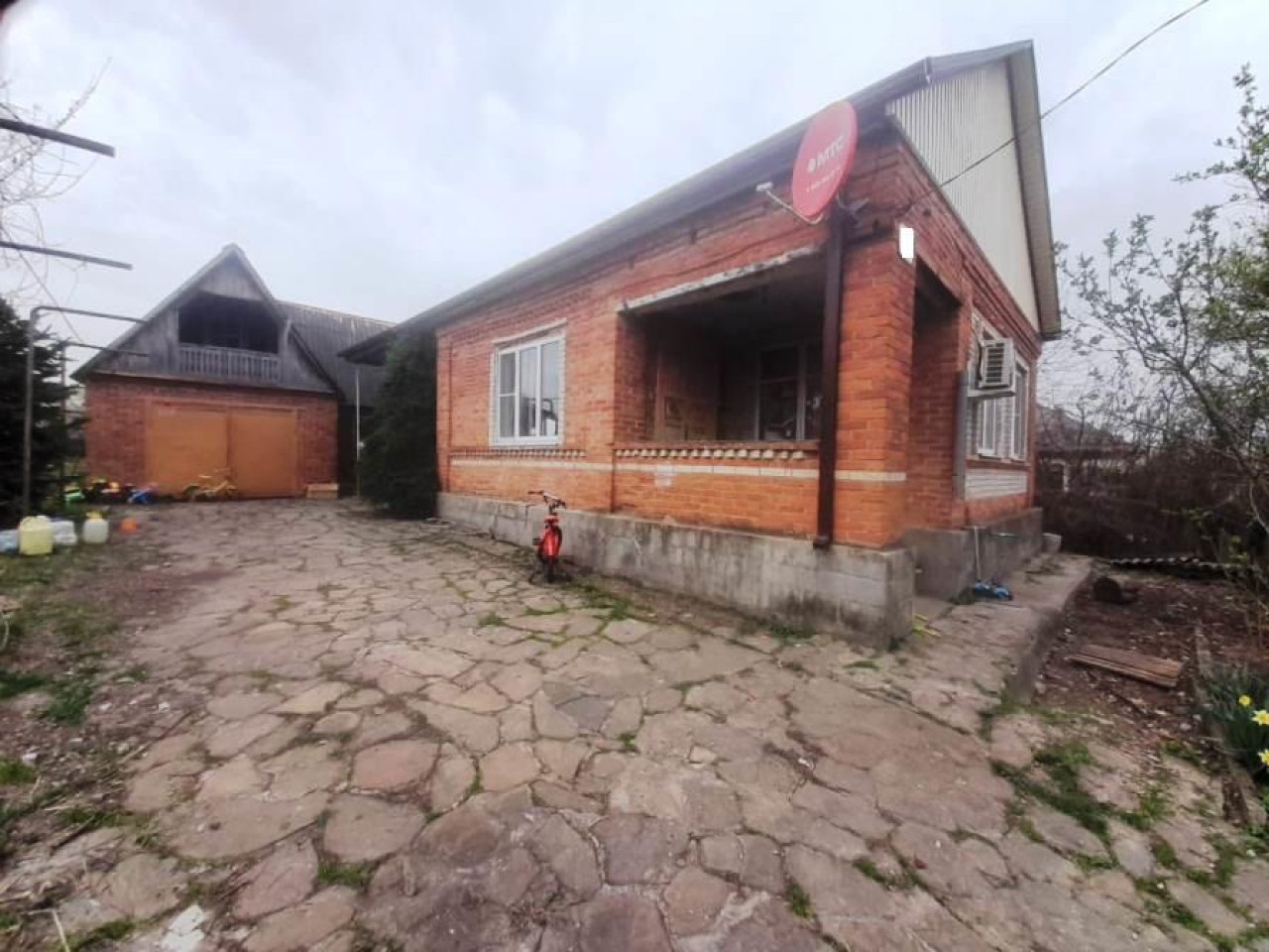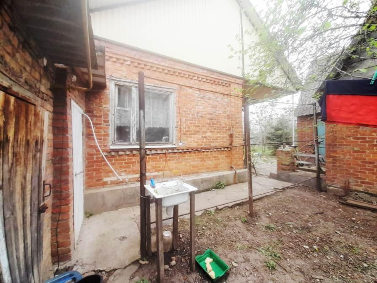Во дворе гараж, отдельно стоящая кухня, котельная. Есть заезд для машины, хоз постройка, курятник.