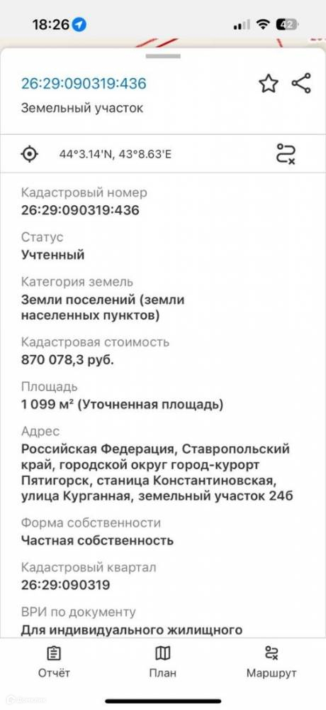 Отличный вид на Машук. Земля в собственности.