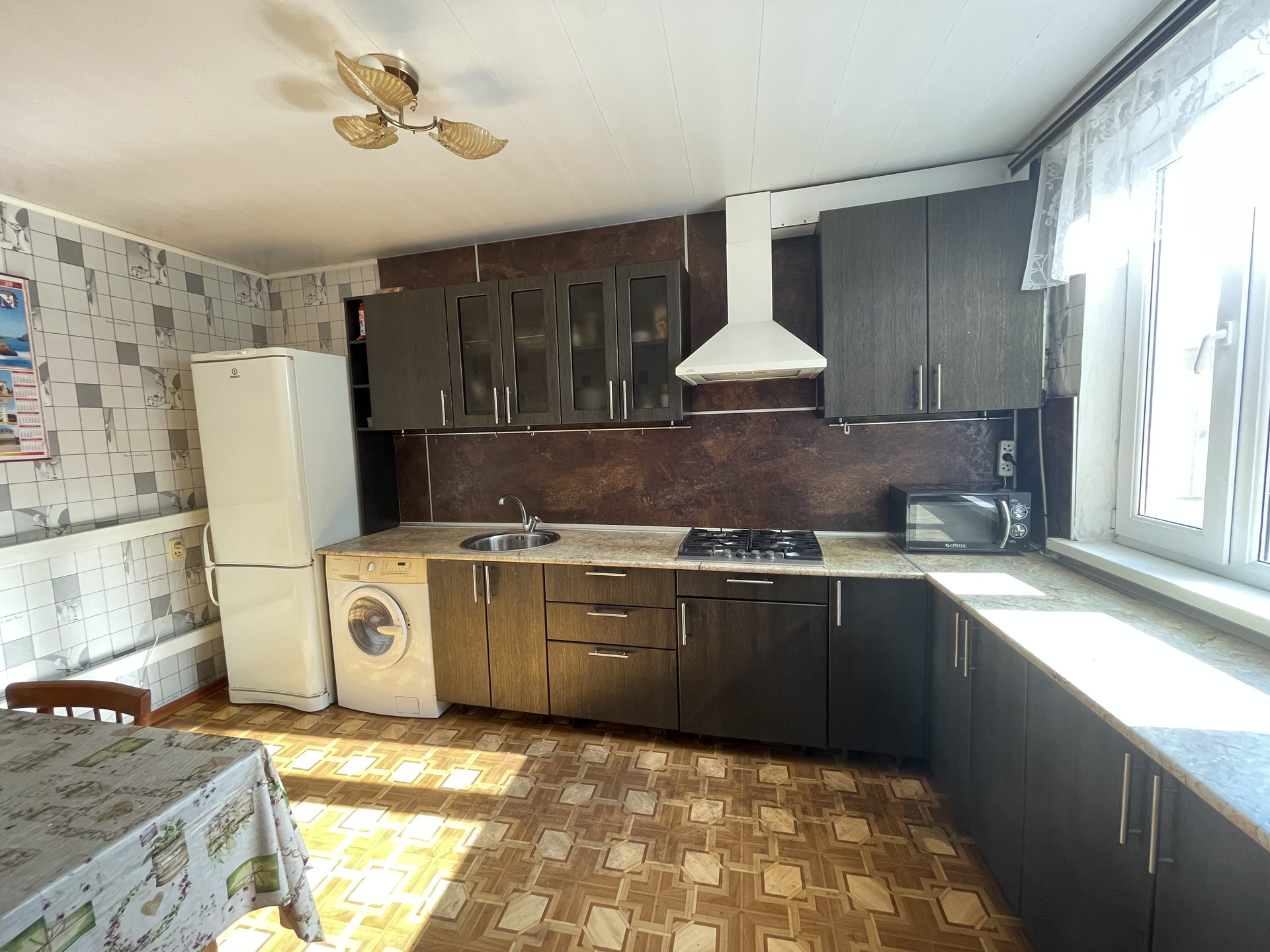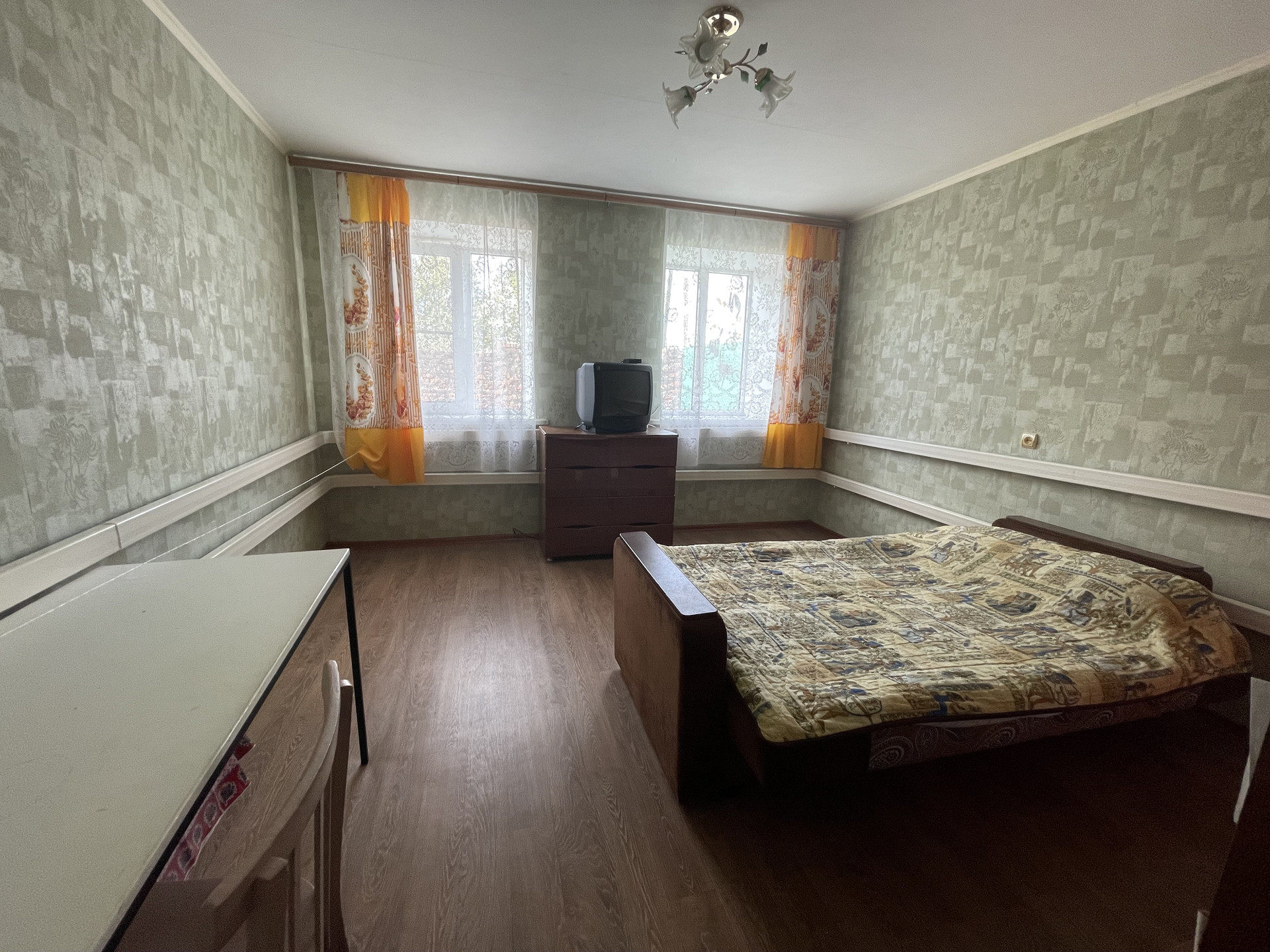Продам  жилой дом общ.пл. 77.5кв.м. на  зем.участка  25сот. В доме 2 изолированные спальни, зал 23 кв.м , кухня, сан.узел совместный.  Окна МПО, в доме сделан косметический ремонт. Вся мебель и техника остаётся .  Во дворе летняя кухня газифицирована и состоит из двух комнат. Есть 2 больших гаража с мастерскими, остается хоз.инвентарь, мотоблок. Земельный участок ухожен, много фруктовых деревьев, есть теплица , скважина с насосом для полива.  Есть навес для машины .  Зона отдыха с беседкой, а также встроенный бассейн для купания летом.  В пешей доступности продуктовый  магазин , ходит школьный автобус, а также рейсовый.