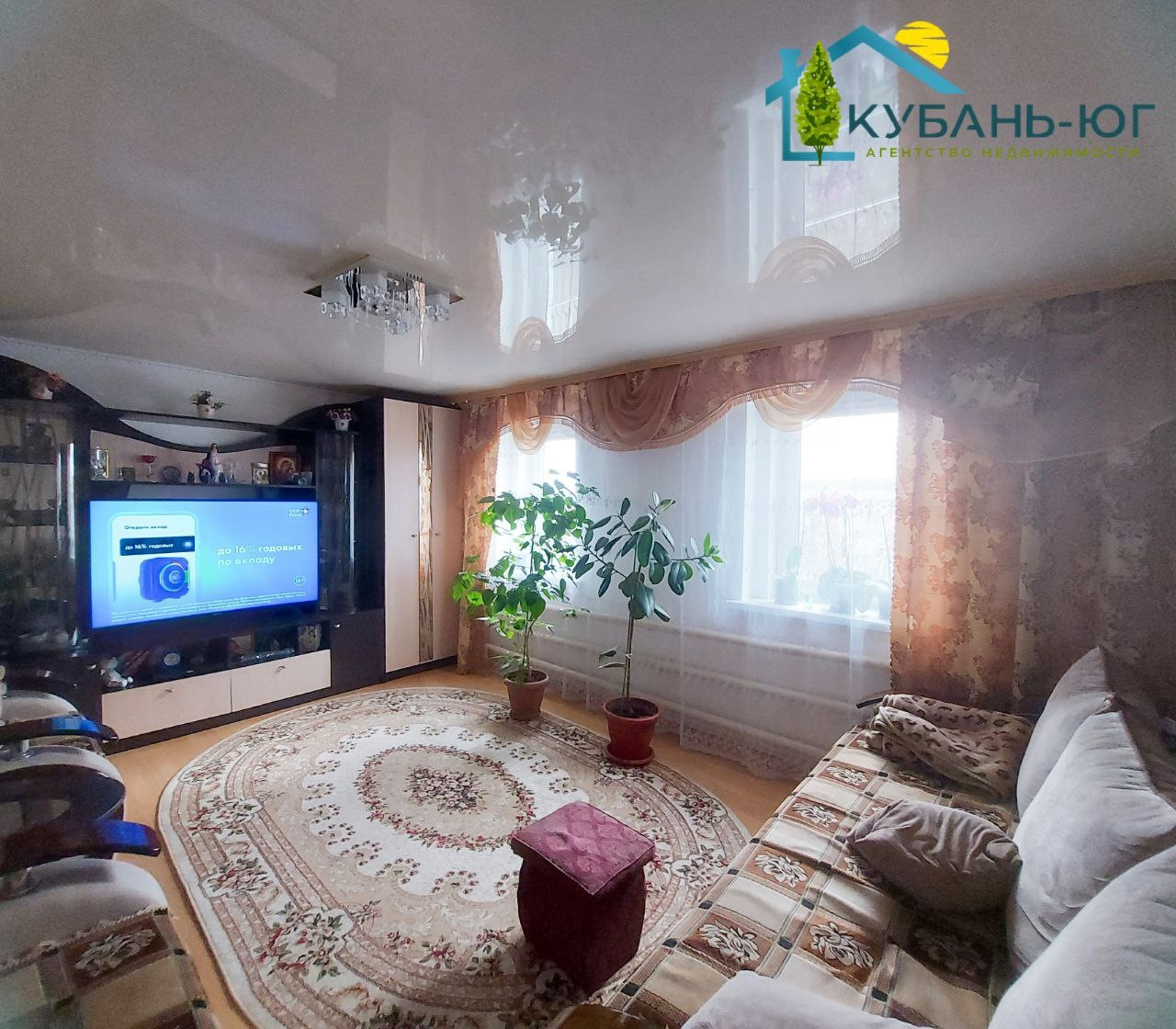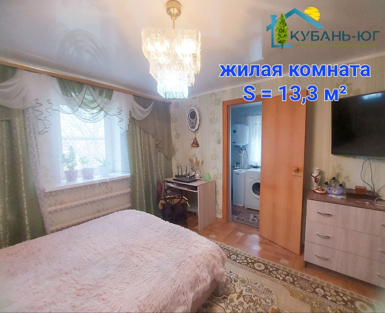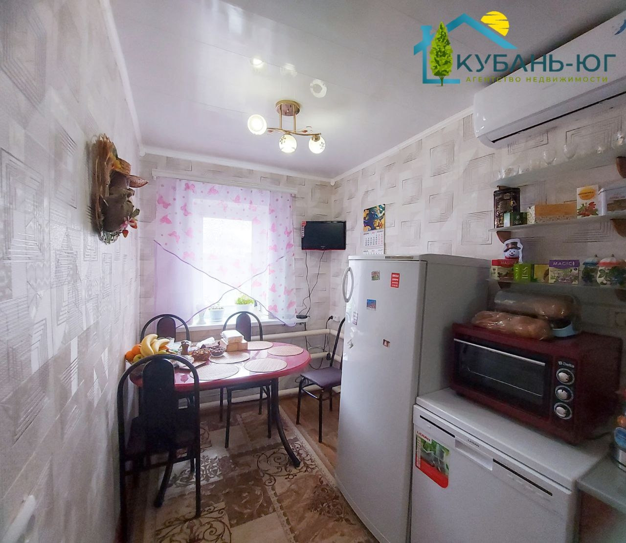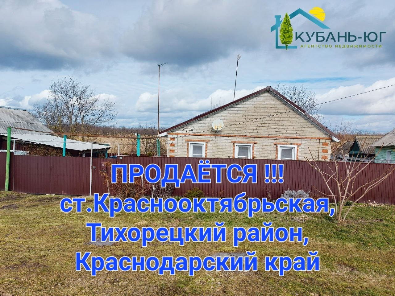 В станице Краснооктябрьская, Тихорецкого района, Краснодарского края, продаётся домомовладение площадью 58,1 м² на земельном участке 17соток. Фасадная часть забора из металлопрофиля. Ширина фасада 25,78 м. В дом ведёт крыльцо, площадью 2,8 м². Дом состоит из коридора,котельной,кухни,двух жилых комнат и совмещённого сан.узла. Во всём доме на полу линолеум, в зале на полу ламинат. Потолки натяжные,стены оклеены обоями. В котельной установлен напольный газовый котёл. В совмещёноом сан.узле установлен бойлер на 50 литров. В кухне установлен бойлер на 15 литров. Дом уютный,светлый. Вся территория поделена на секторы. Часть двора,где располагается дом и хоз.постройки заасфальтирована. Из хоз.построек имеются: летняя кухня, площадью 29,5м² с навесом и глубоким погребом,пдощадью 7,5 м², гараж,площадью 19 м² с навесом, два сарая для хозяйственных нужд и хранения инвентаря. Второй сектор - хоз.двор, отделён от домовой территории металопрофильным штакетником. В этой части двора находится летний душ,уличный туалет,колодец для полива огорода,птичник. Третий сектор двора - огород, отделен от зох.двора заборм,состоящим частично из металлопрофиля, частично из листов шифера. Огород имеет выход к реке.