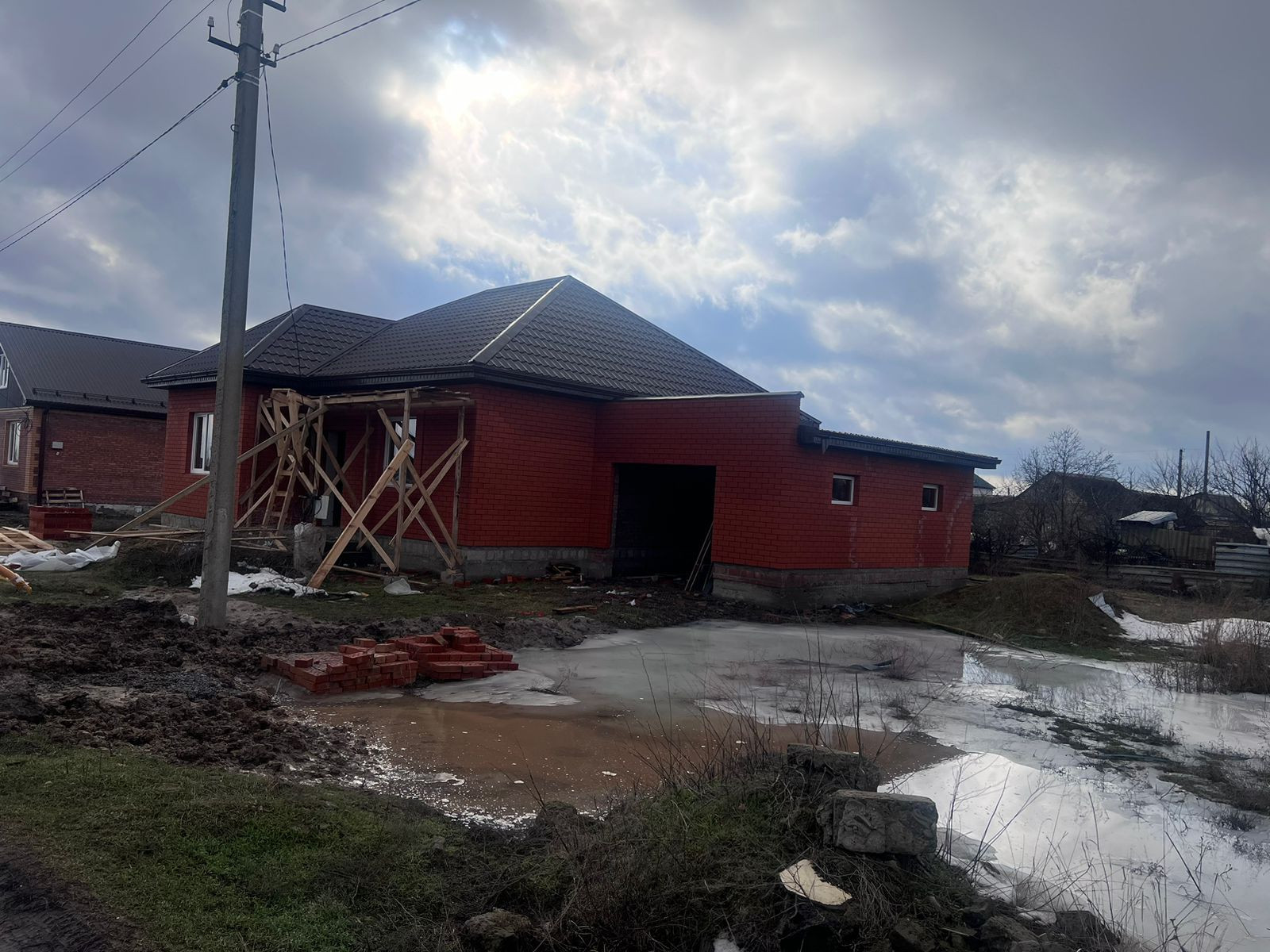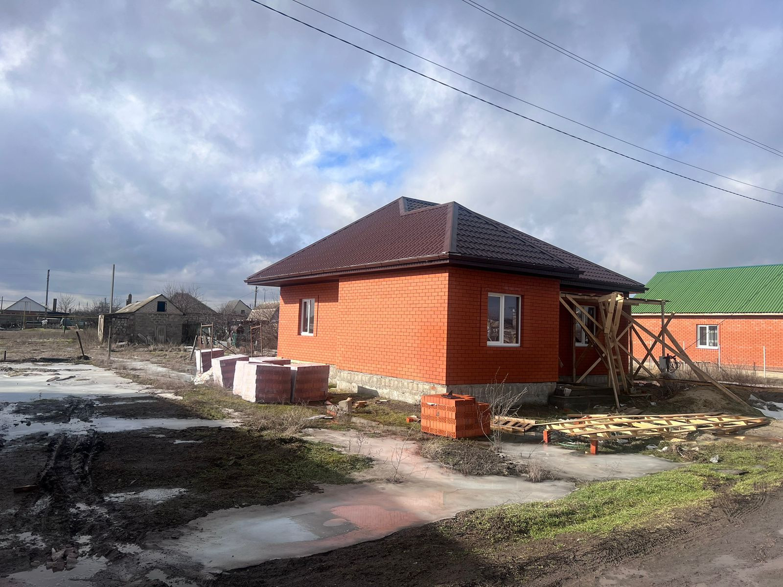Продается стройвариант, не введен в эксплуатацию, газ оплачен, будет подведен, газоблок, облицовачный кирпич. Гараж 30 кв.м.В шаговой доступности магазины, школа, детский садик.