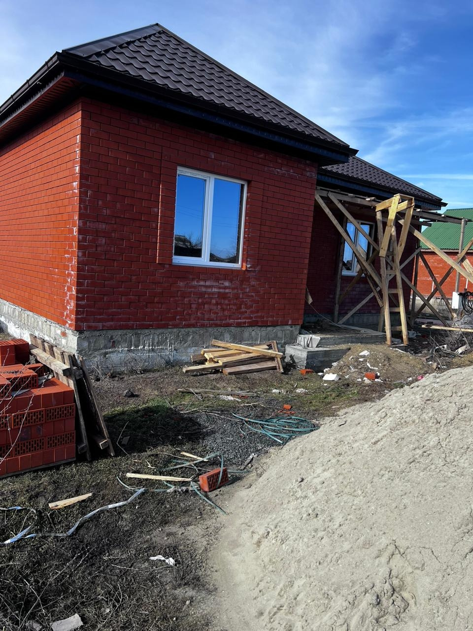 В ст.красноярская продаётся стройвариант газоблок 250+облицовочный кирпич. Вода скважина, все коммуникации заведены, дорогие энергосберегающие окна Солар, 2 изолированные спальни + кухня-гостиная 40кв.м., которую можно разделить на 2 комнаты, утеплённые потолки, стены в процессе штукатурки.