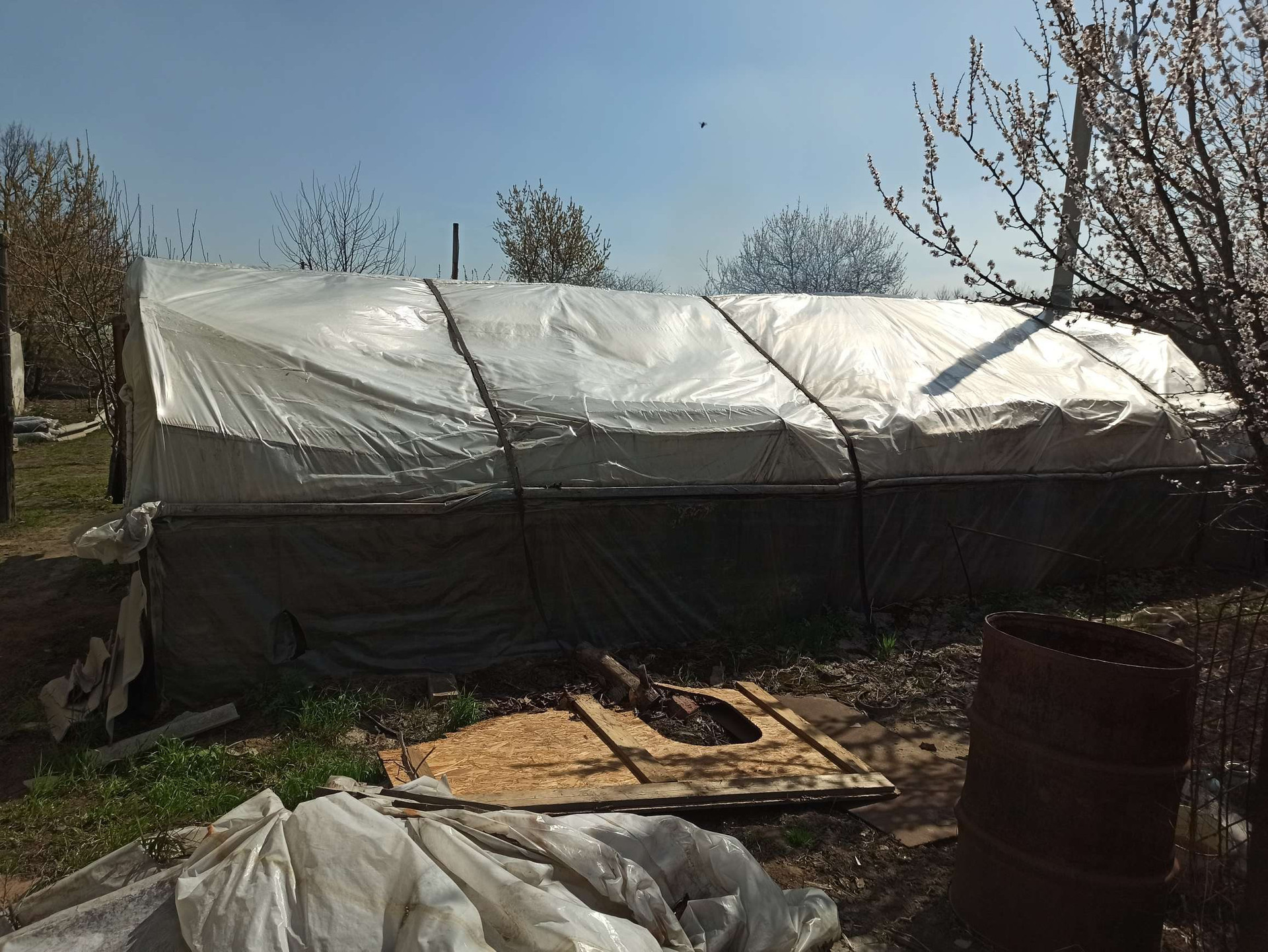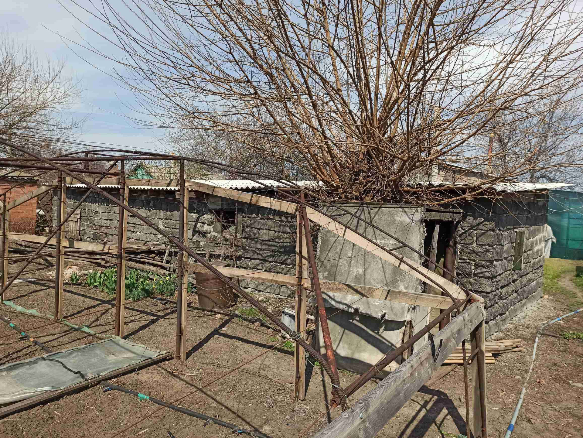Газ и вода по миже. Отопление угольный котел , скважина , хоз постройки, 4 балагана на 4000 тысячи кустов,15 соток земли! Торг