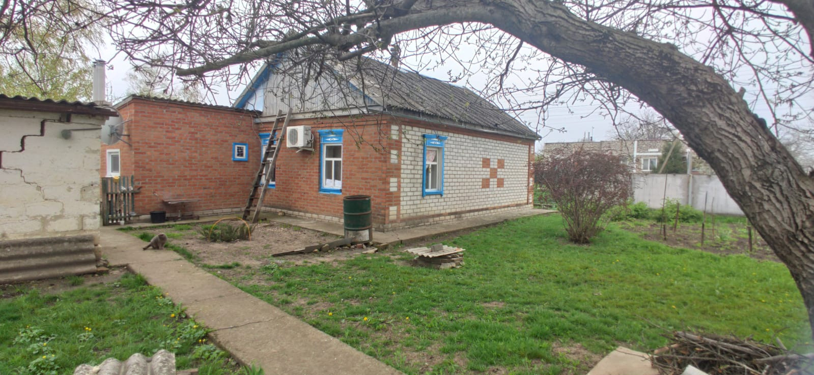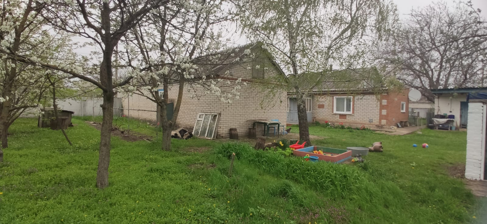 Участок угловой находится на пересечении двух улиц Чкалова и Станичная. Есть сад с большим количеством плодовых деревьев (слива, черешня, вишня, груша, айва, алыча, яблоня, абрикосы и ДР.) Виноградник и кустарники крыжовника, черной смородины, малины и ежевики).