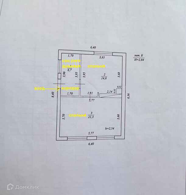 Общая площадь 42.8 м2