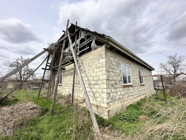 Продаётся дом 120 кв. м. в станице Курчанская Темрюкского района. В основном домовладении три спальные комнаты (раздельные), кухня-гостиная, сан. узел. Дом не достроен до конца, выведены стены из блока, накрыта крыша, но не утеплена. Коммуникаций все - газ, электричество, вода централизованная, все заведено в дом, септик. Земельный участок 20,1 сотка, с возможностью строительства нового дома.