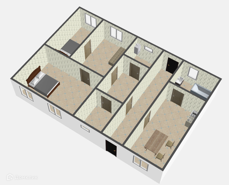 В доме 3 комнаты, кухня, санузел, котельная, кладовка, коридор.
