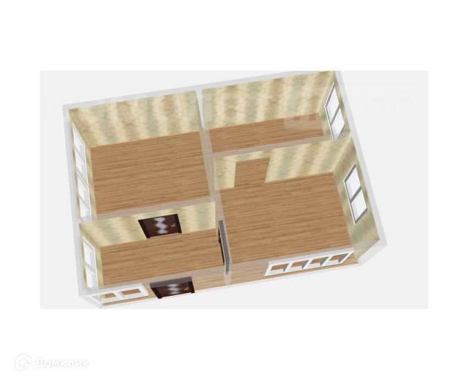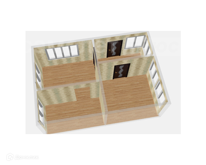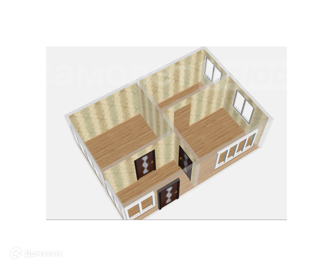 Дом просторный включает в себя 3 комнаты : 2 изолированные спальни и один зал.