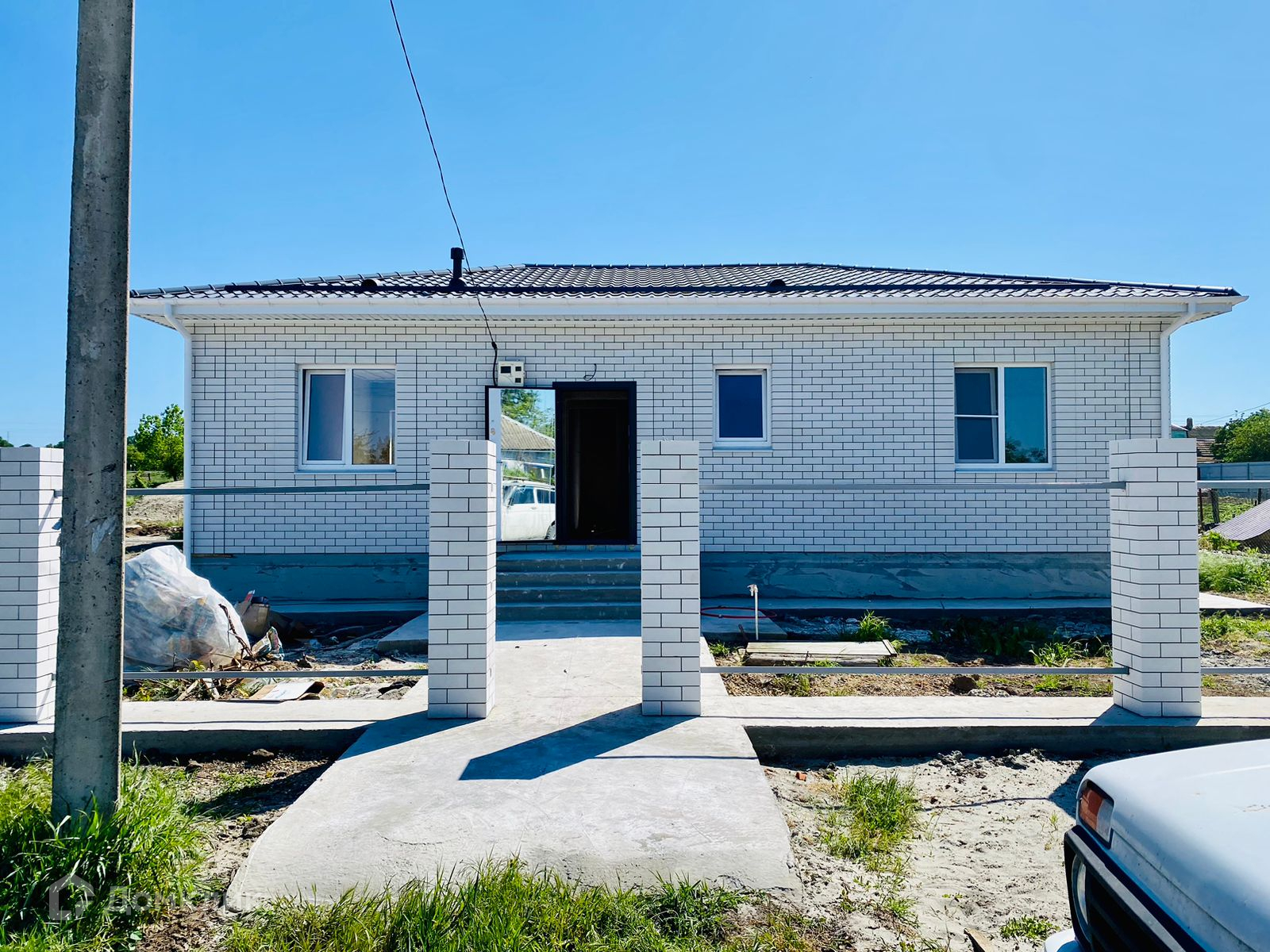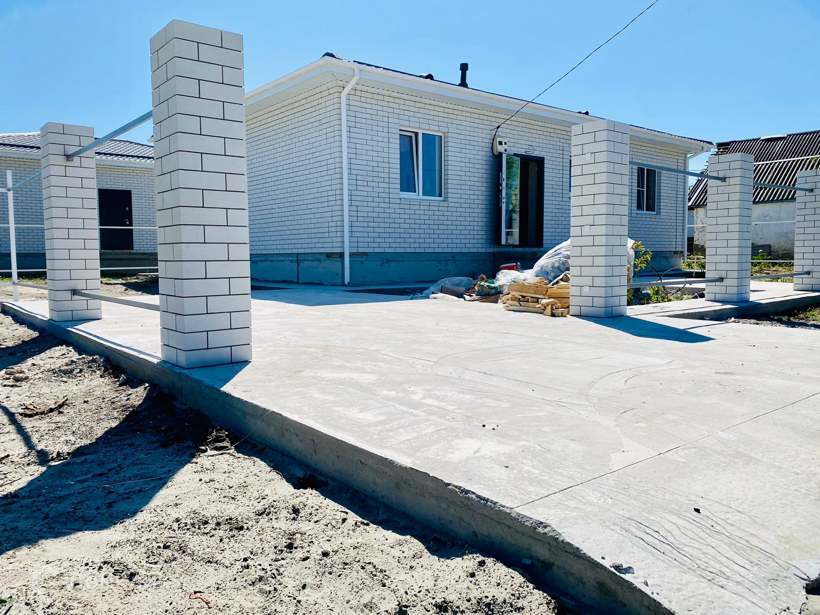 Бетонированное место под авто, дорожка к дому.
