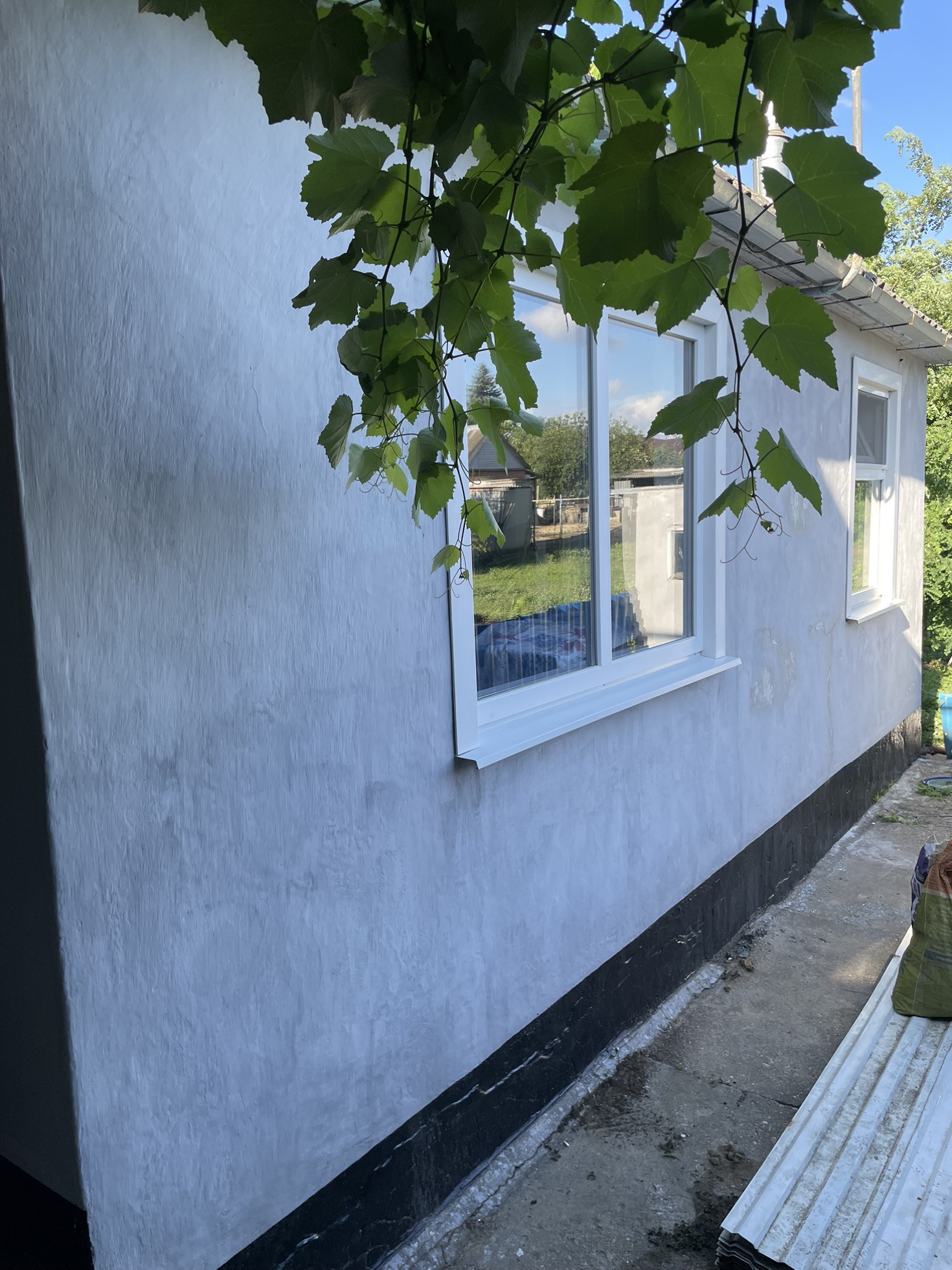 Ухоженный участок с плодоносящими кустарниками, беседка из винограда.