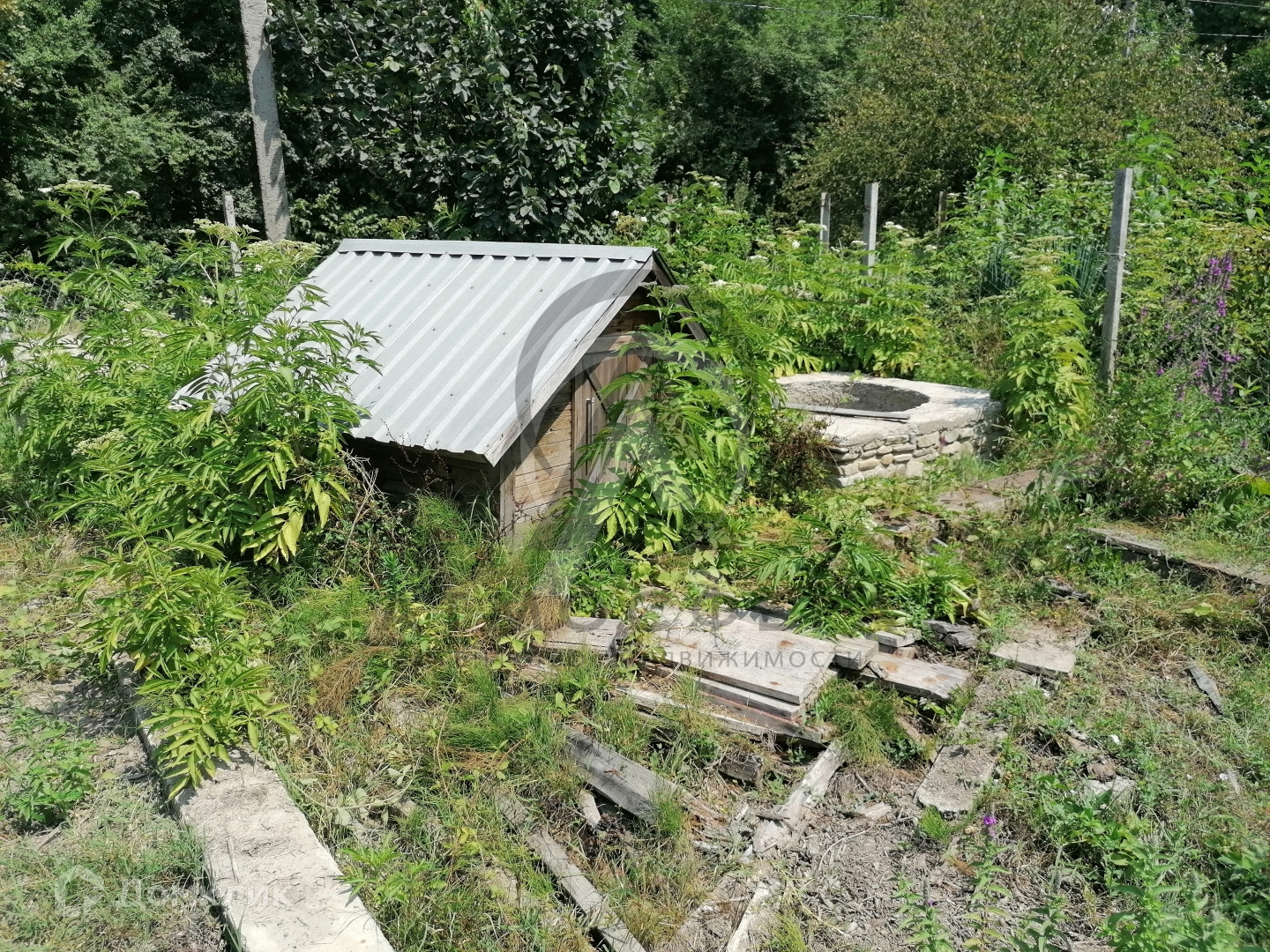 На участке имеется навес с виноградом, 5 сараев которые можно использовать под разведение животных. Из деревьев и кустарников на участке растут персики, яблони, орехи, виноград, ель, берёзы. За участком протекает река Кура.