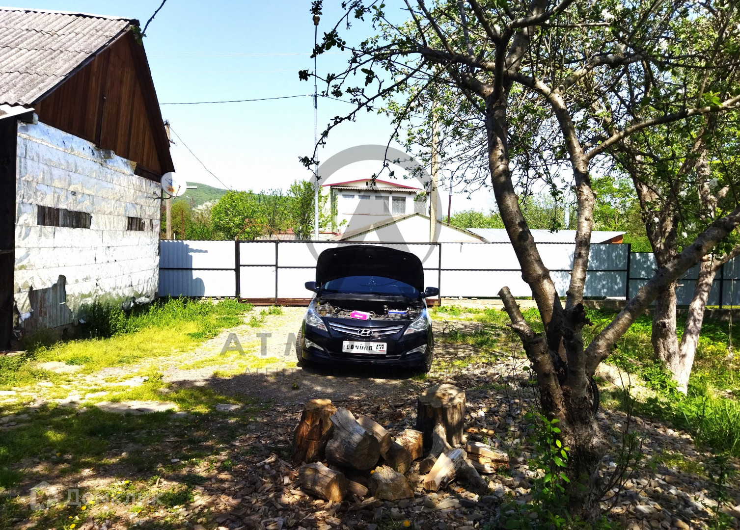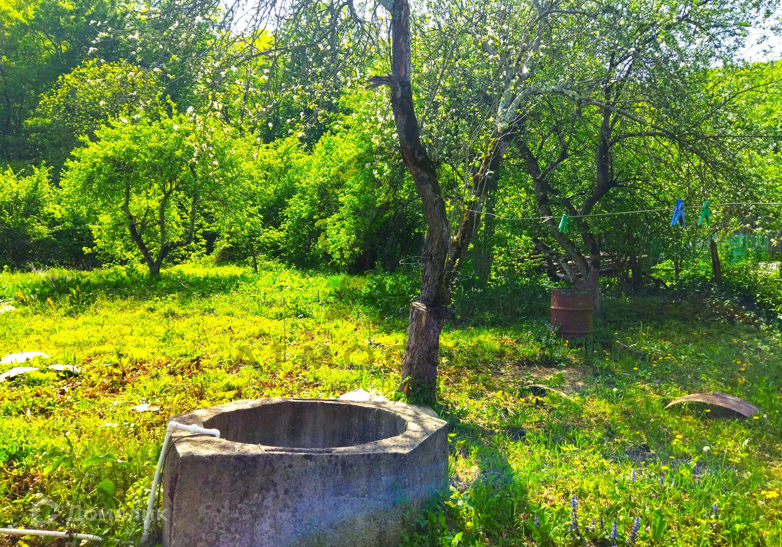 Двор большой, где могут поместится 4 машины. Есть сарай для кур. На участке растут яблони, груши, черешня, айва. Из кустарников- смородина и малина, имеется колодец. Участок большой, на котором можно осуществить свои  мечты о новой стройке.