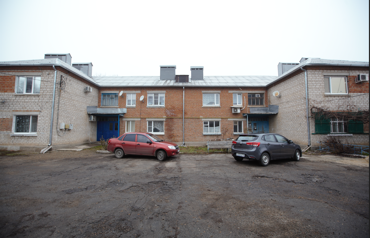 Во дворе дома расположена стоянка для автомобиля.