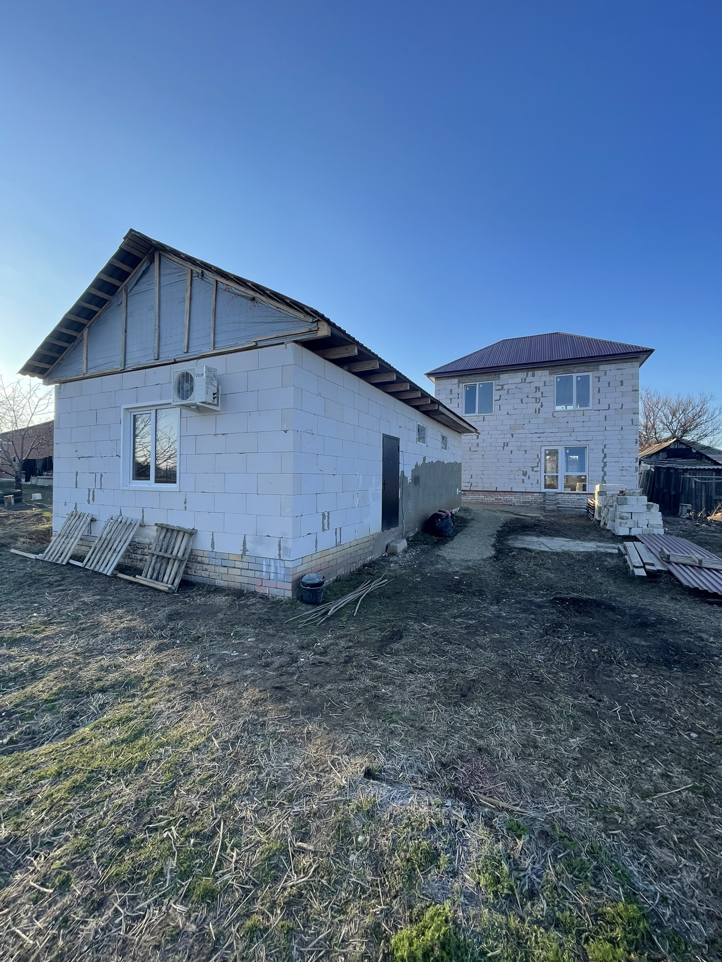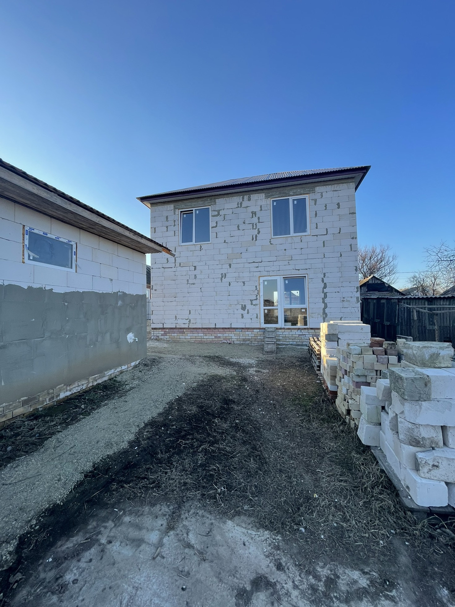 Строил для себя. Введен в эксплуатацию, можно в ипотеку. Вода и септик подключены к дому и гаражу, свет 3 фазы (подведен только к гаражу), газ подземка идет по улице. Фундамент дома монолитная плита, армопояс залит в виде клетки. Окна новые качественные, с выходом на террасу. Внутри без отделки. Гараж с ямой и балкой для двигателей, 11 на 5 внутри, заезжает газель.