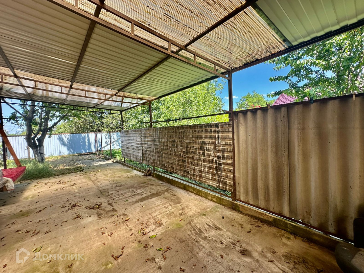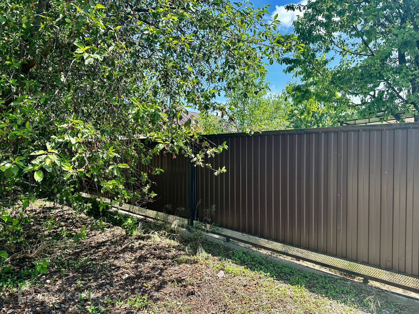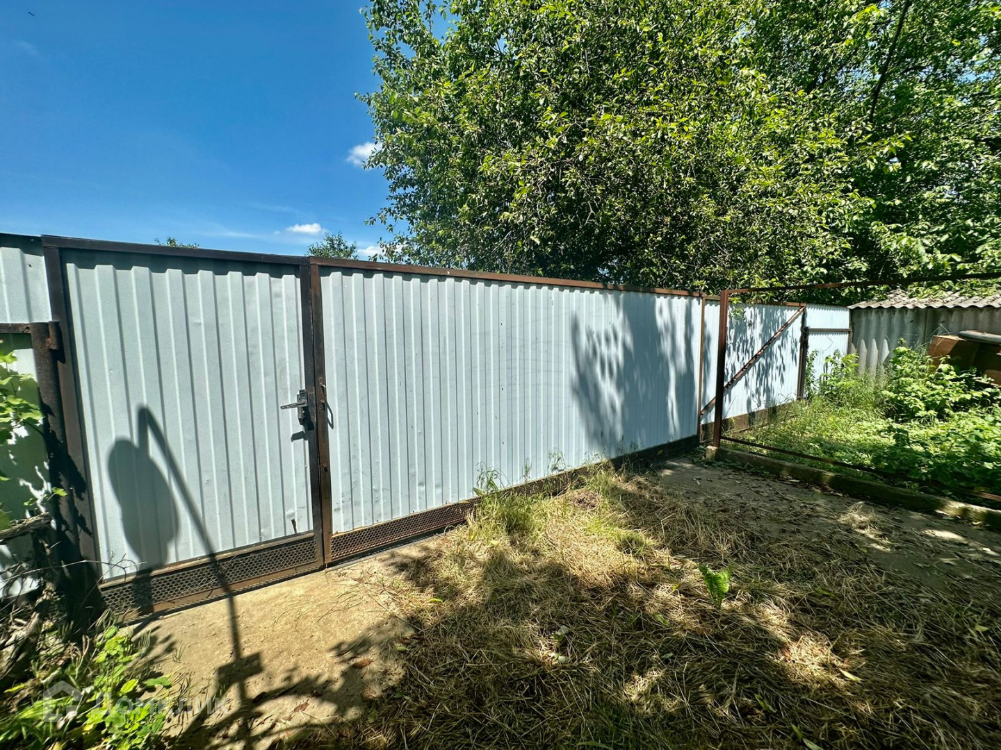 Двор бетонирован, по периметру установлен забор, фасадная часть из металлопрофиля с откатными воротами. Имеется заезд для автомобиля.