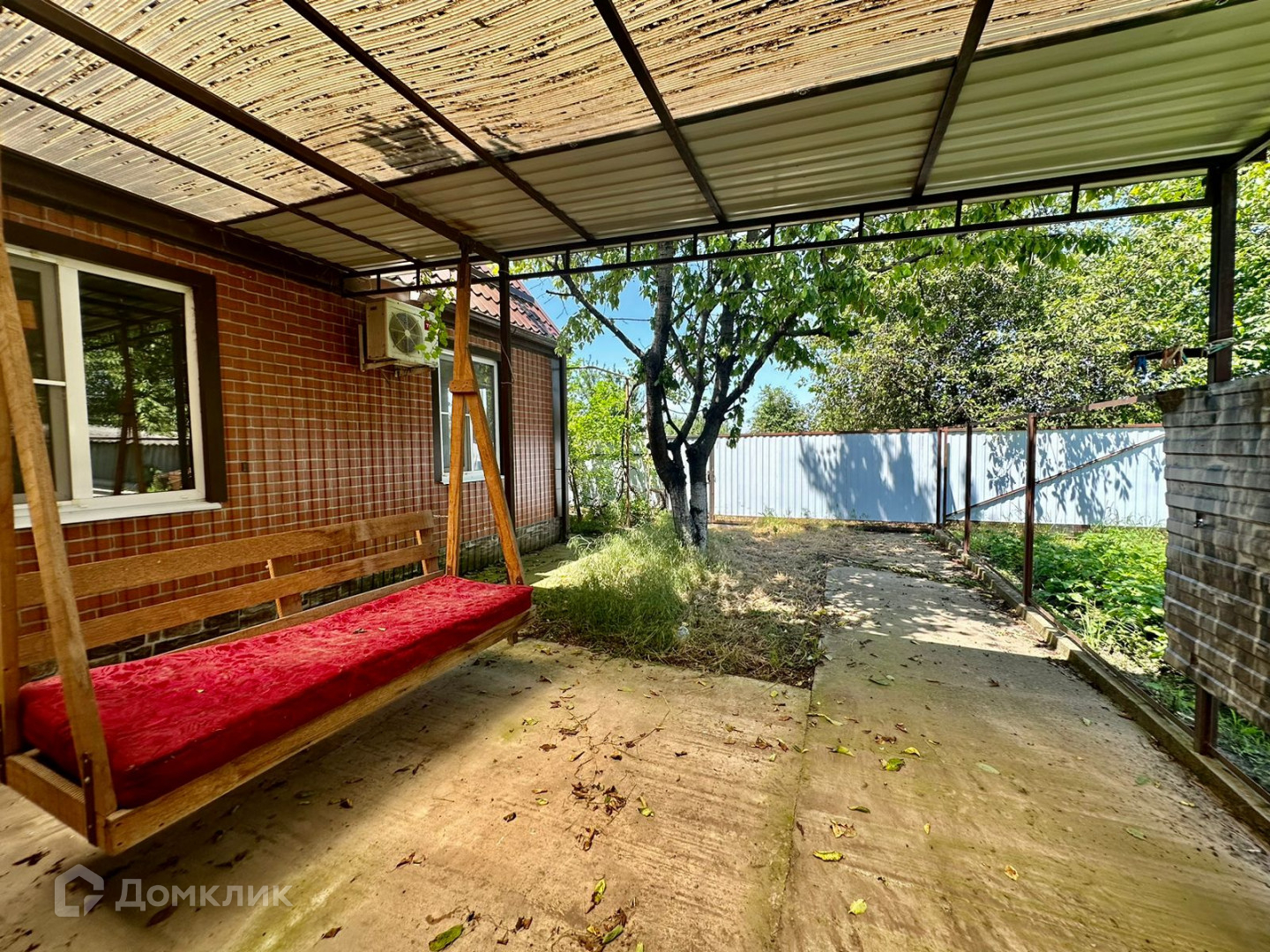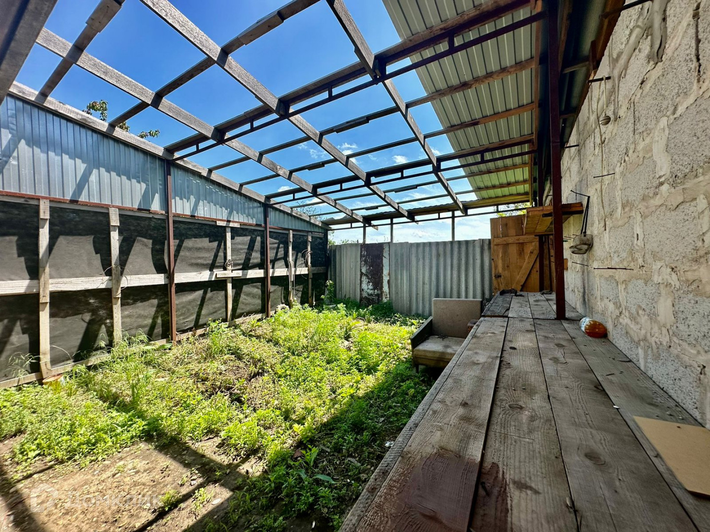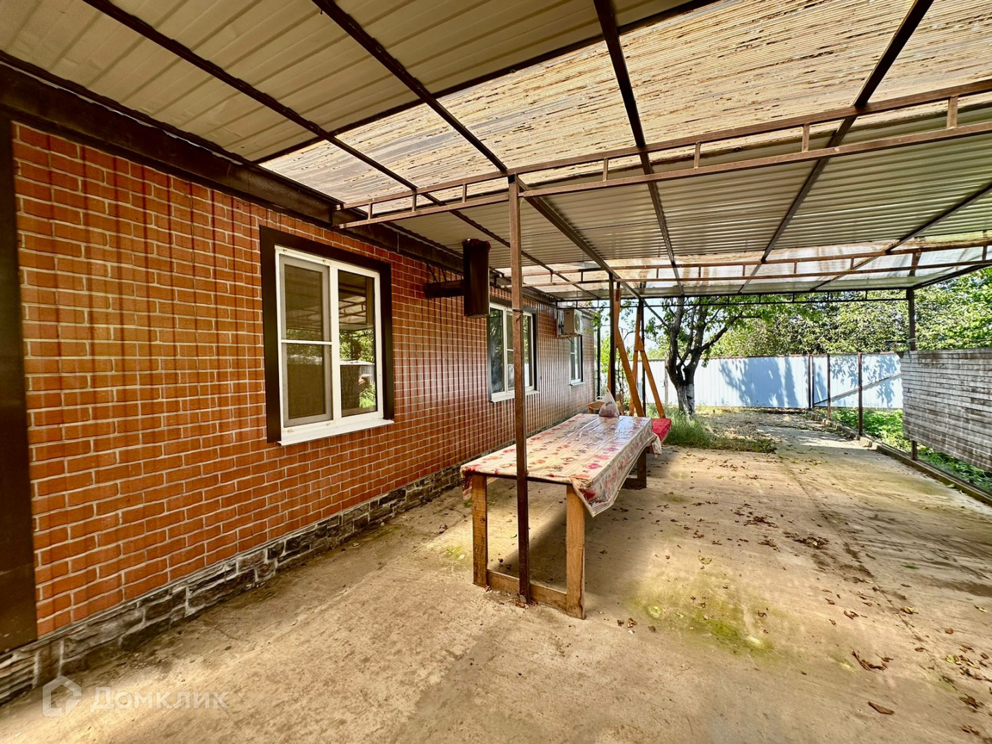 Двор бетонирован, по периметру установлен забор, фасадная часть из металлопрофиля с откатными воротами. Имеется заезд для автомобиля.