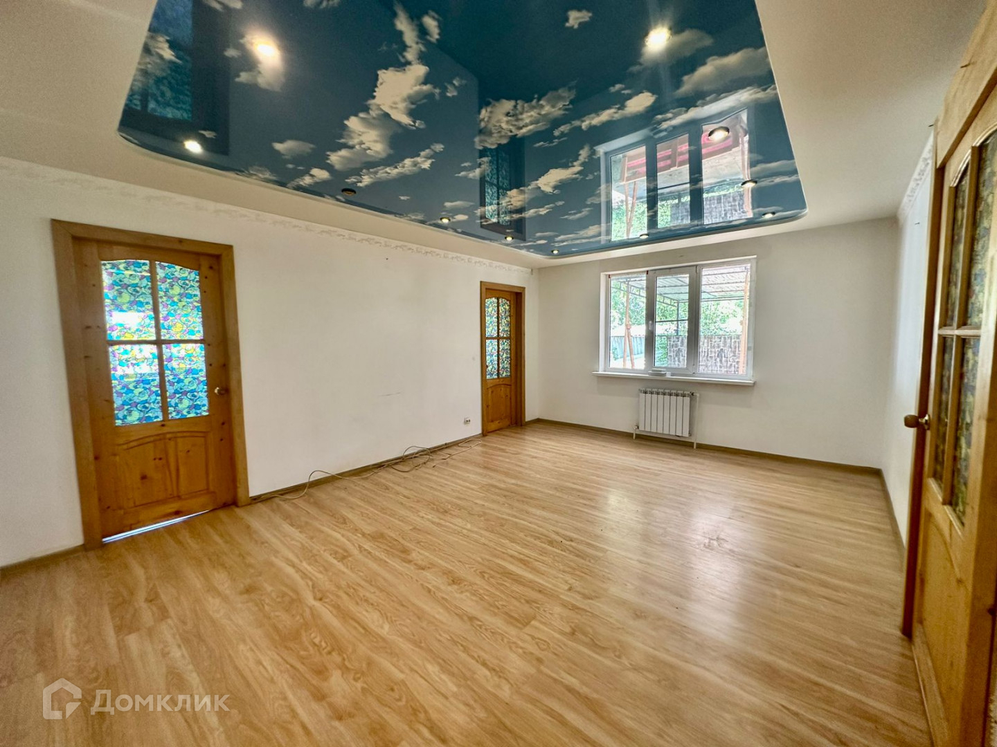 В доме: натяжные потолки, на полу ламинат, на кухне и в санузле «теплый пол».