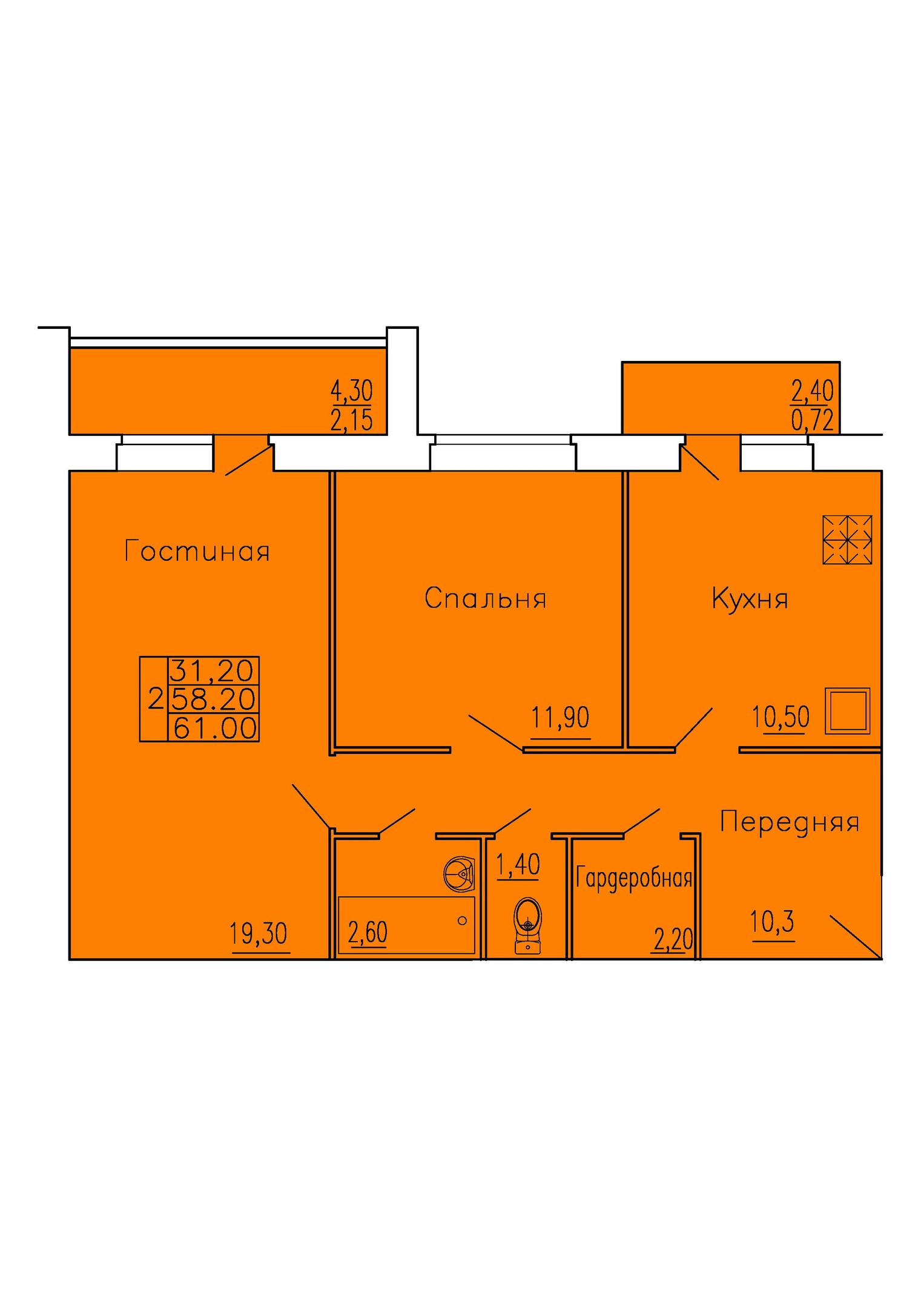 Общая площадь 65 м2