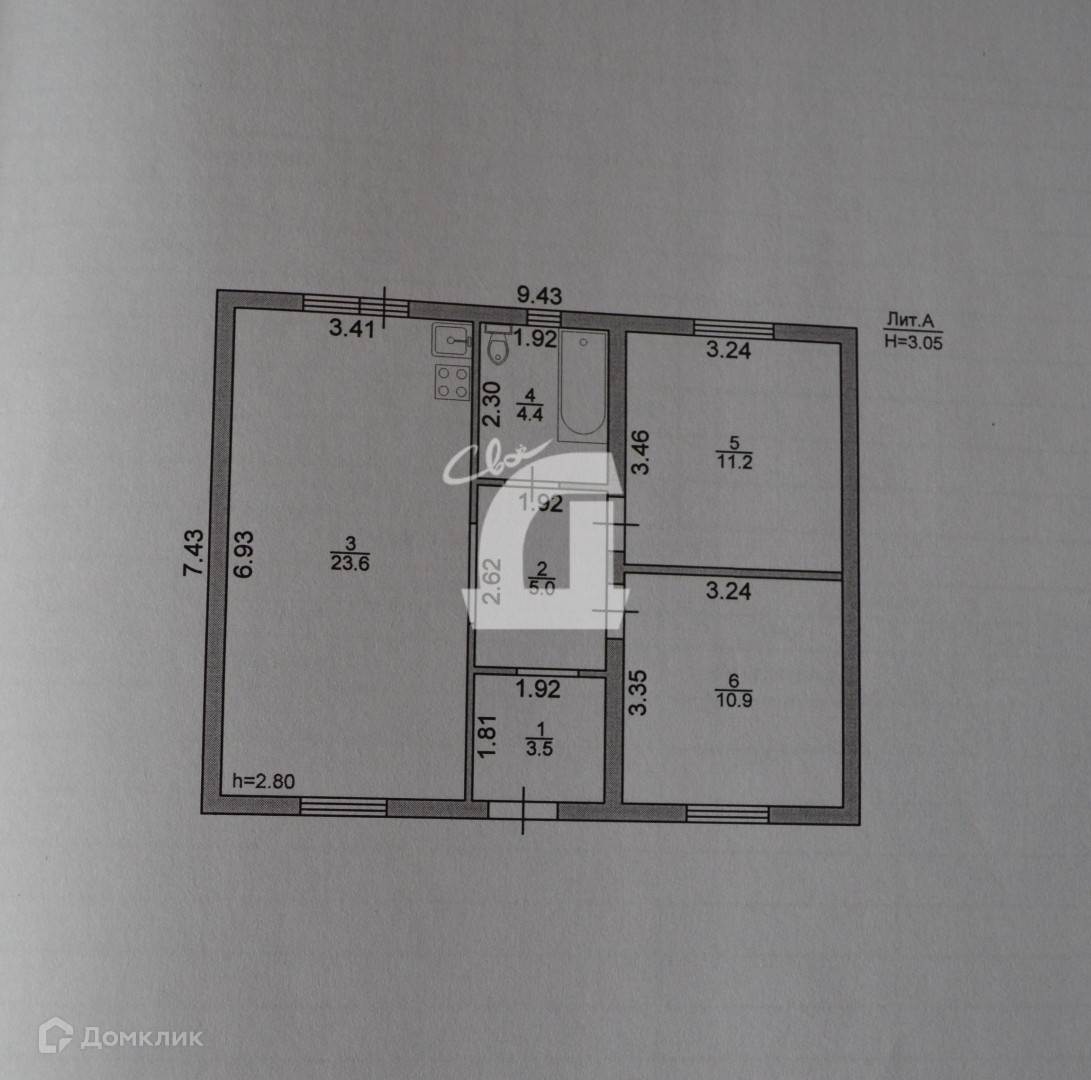 Жилая площадь 54.6 м2