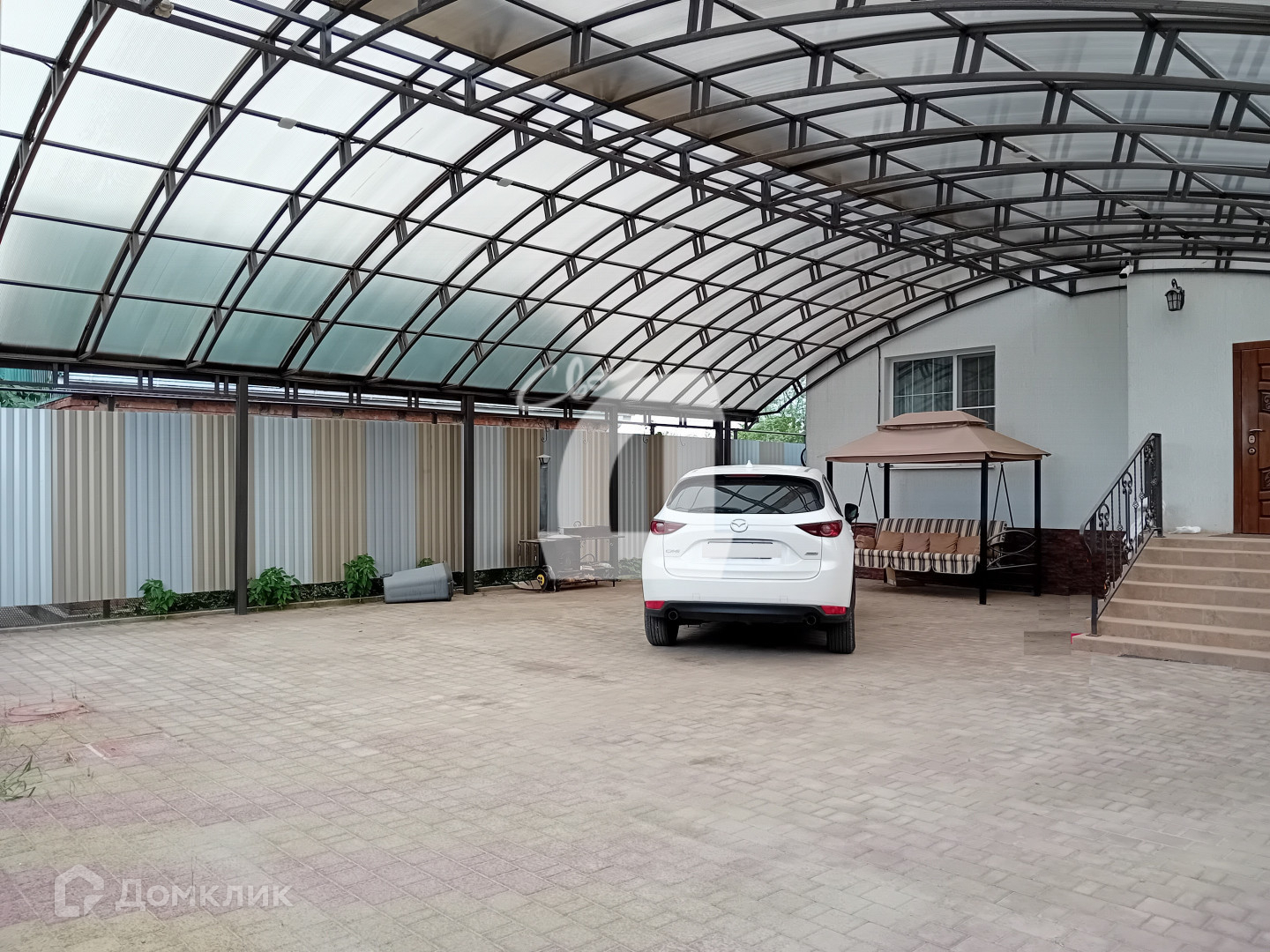 Участок правильной, ровной формы, 3,5 сотки земли. Перед домом, зоны въезда и стоянки автомобилей. . Большой благоустроенный двор на 3-4 машины полностью выстелен тротуарной плиткой и защищен высоким навесом. На заднем дворе закрытым навесом оборудовано место хранения для уличного хоз. инвентаря и сушки белья. Откатные автоматические ворота