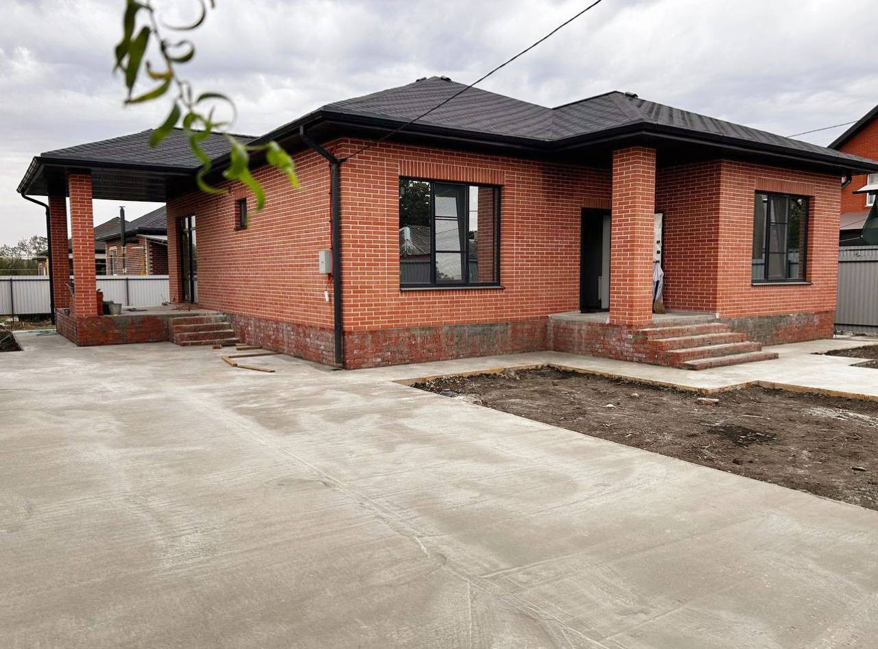 В продаже — новый большой кирпичный коттедж со всеми коммуникациями на завершающей стадии готовности в станице Марьянская/Елизаветинское шоссе, до улицы Красных Партизан в Краснодаре — 25 минут.
