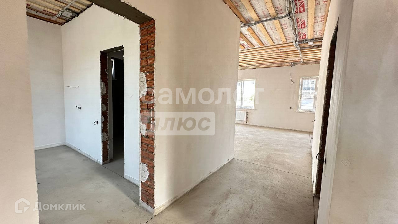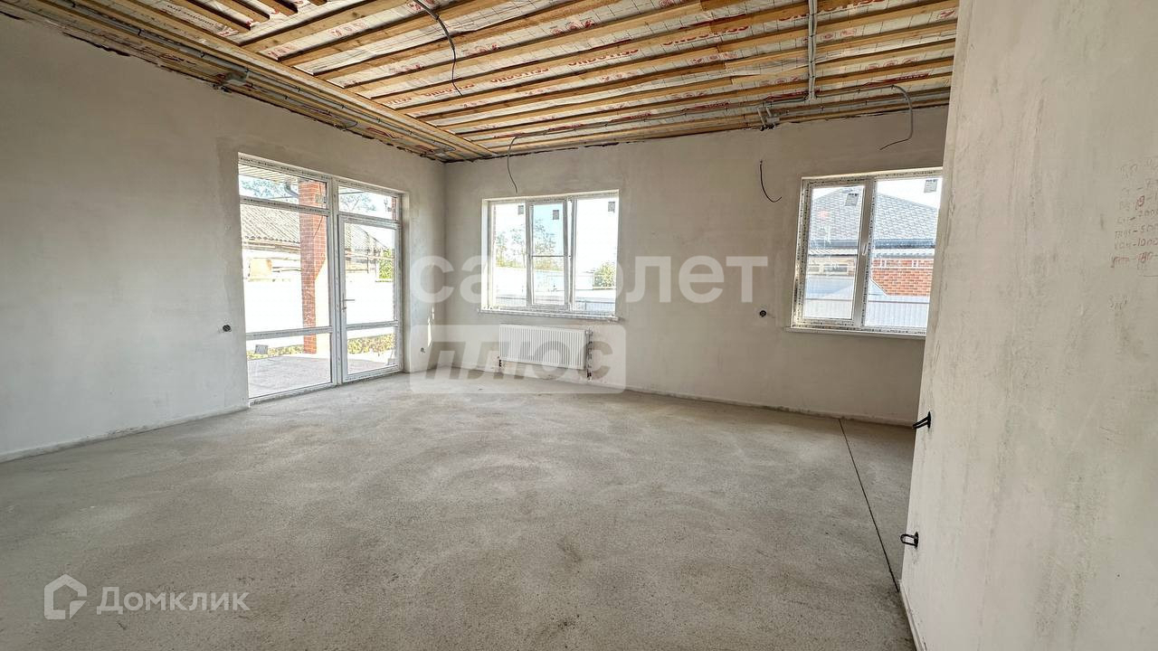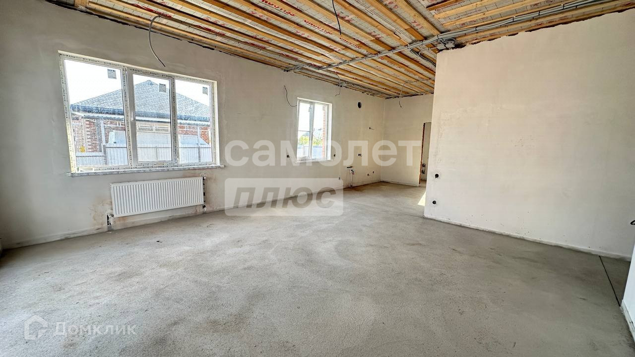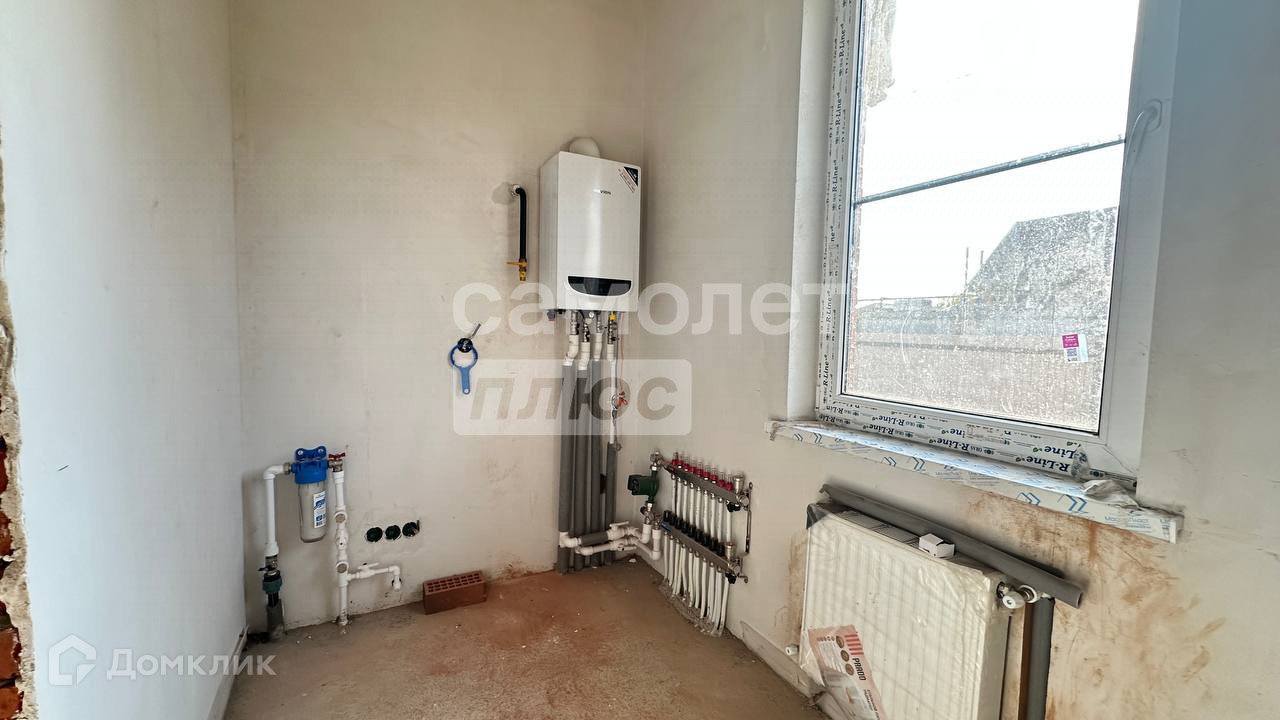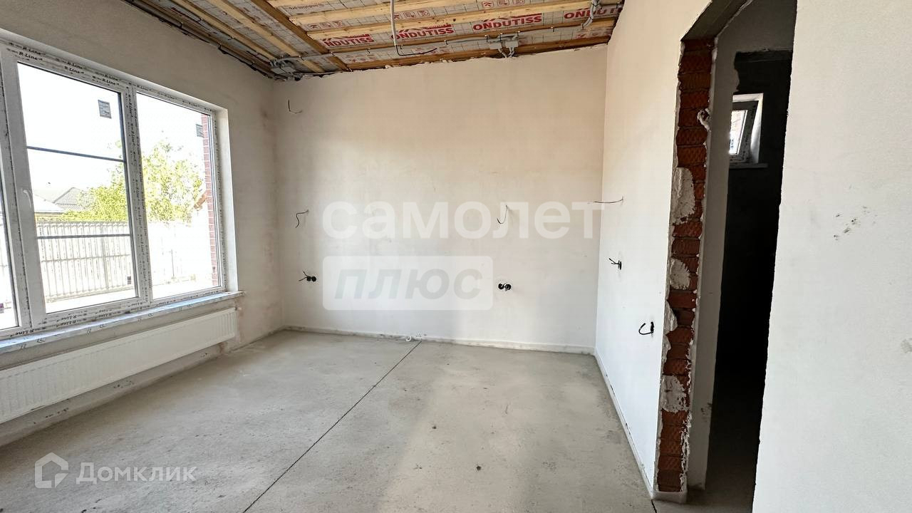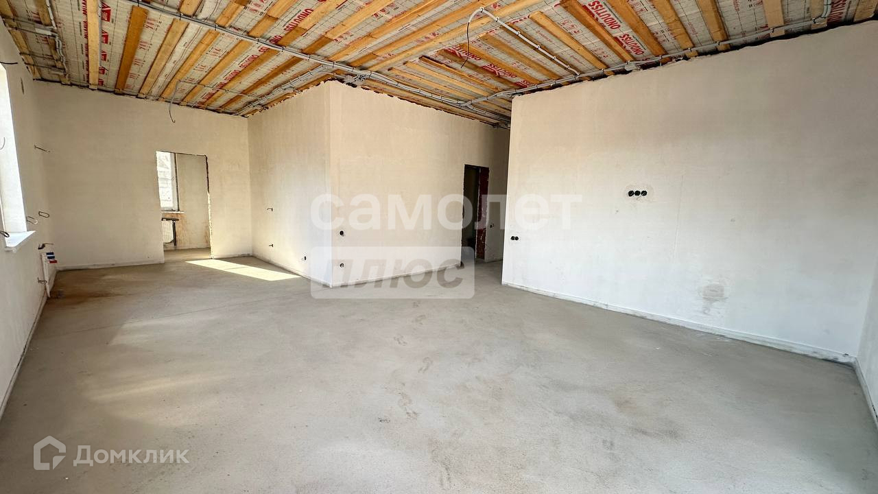 Продуманная планировка: 3 спальни, гардеробные, кладовка, 2 сан.узла, кухня-гостиная 39 кв.м с выходом на террасу и задний двор. Дом в предчистовой отделке: на полу стяжка, стены оштукатурены и отшпаклеваны, выполнена разводка электрики и установлены радиаторы отопления.