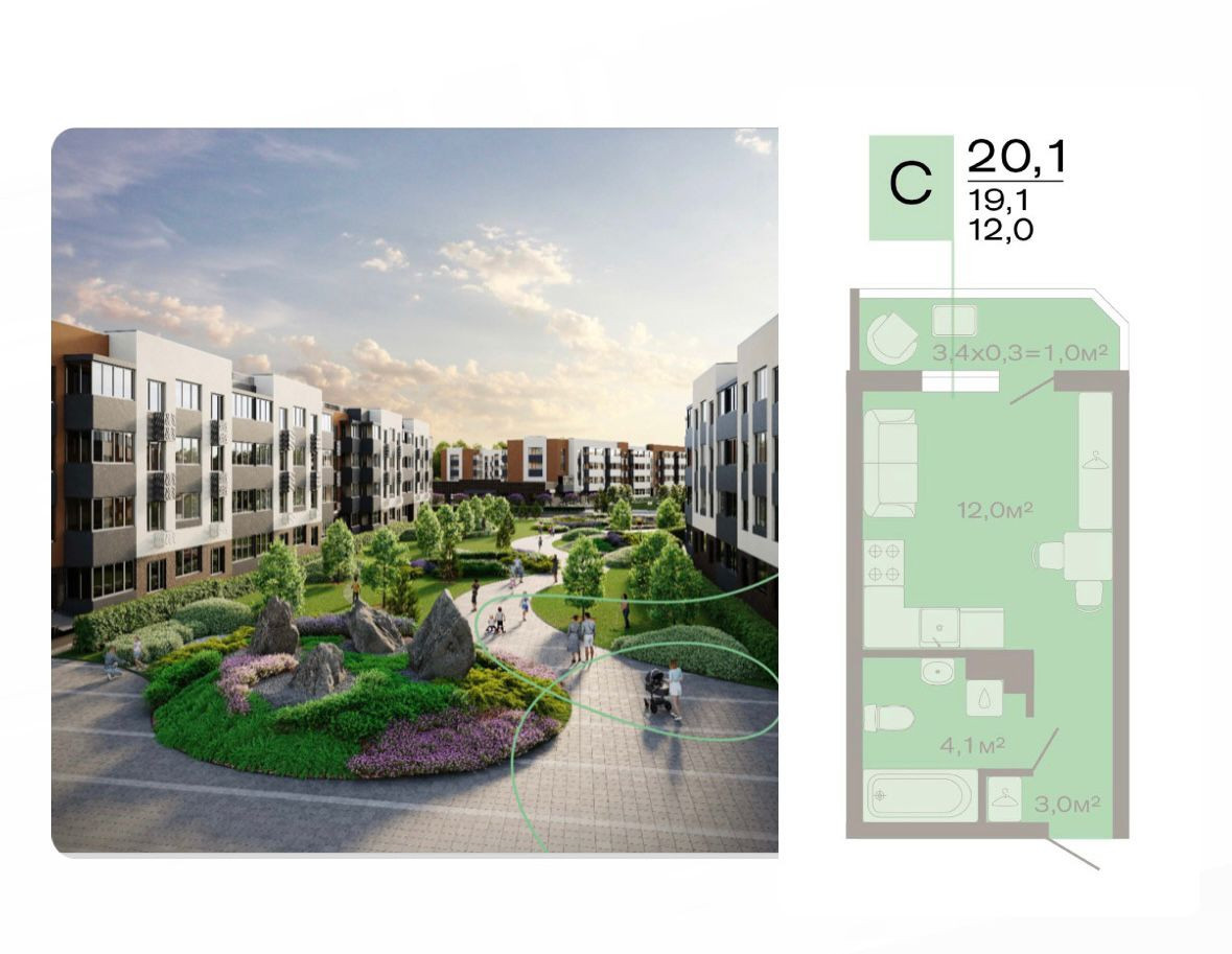 Предлагаю квартиру студию в новом ЖК (без комиссий!) с частичным первоначальным взносом, по госпрограмме или семейной ипотеке .