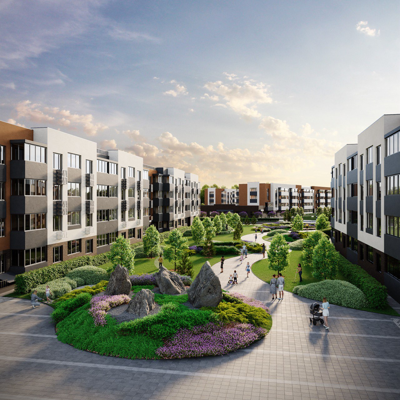 На территории комплекса предусмотрено строительство школы на 1200 человек, а действующий детский сад расположен в шаговой доступности.