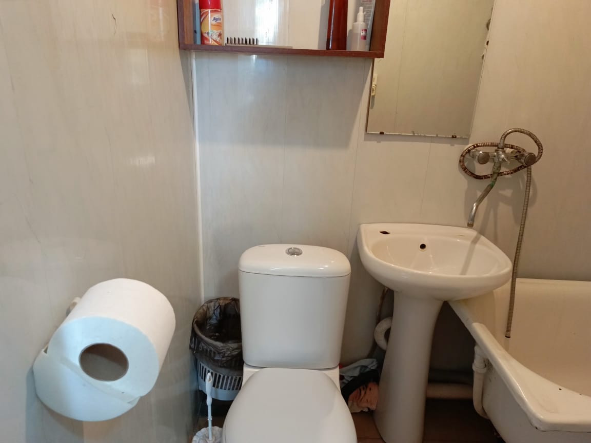 Общая площадь 60 м.кв, три комнаты , кухня. Сан. узел совмещен.