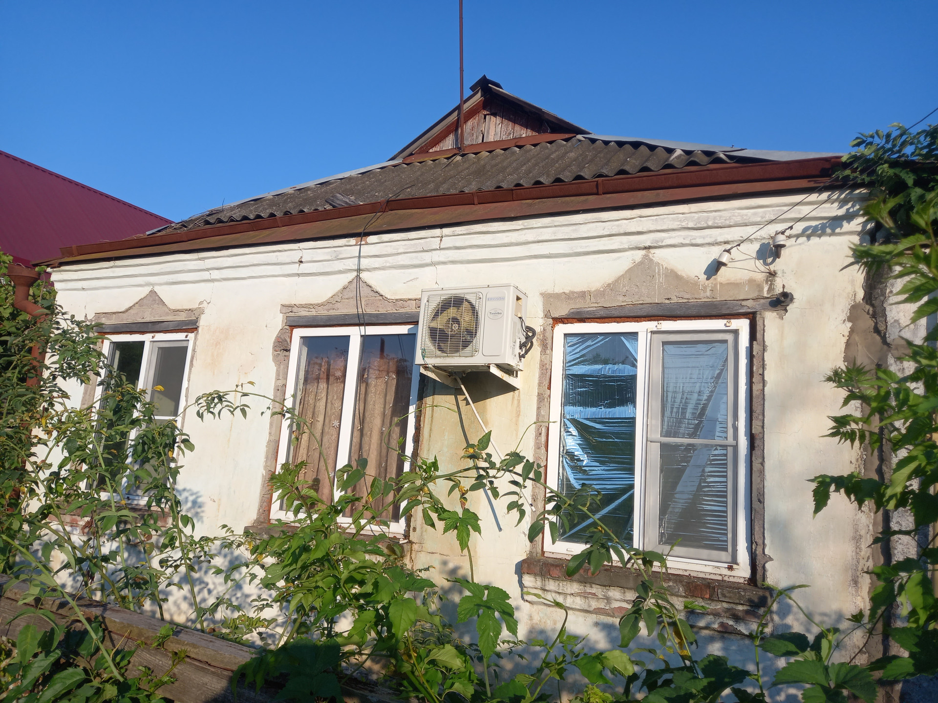 Дом находится в центре станицы Медведовская. 30км от Краснодаоа. Станица большая, 3 школы, 4 д/с, поликлиника, больница и т.п. В доме 4 комнаты, туалет и ванна совмещены, кухня. Дом жилой, но требуется ремонт. Крыша шифер. Дом из пеноблока. счетчики на воду, газ и свет имеются.