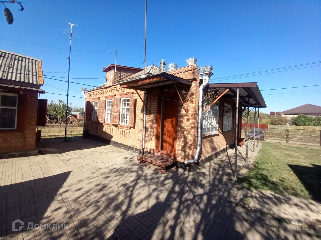 Площадь дома 66,6 кв м, 1974 г постройки. Материал стен — кирпич с армированием по всей высоте стены. Кровля из шифера. Высокие потолки. Окна из дерева. Цоколь 40 см. В доме 5 комнат, прихожая и совмещенный санузел. Дом требует современного ремонта, состояние позволяет зайти и жить.