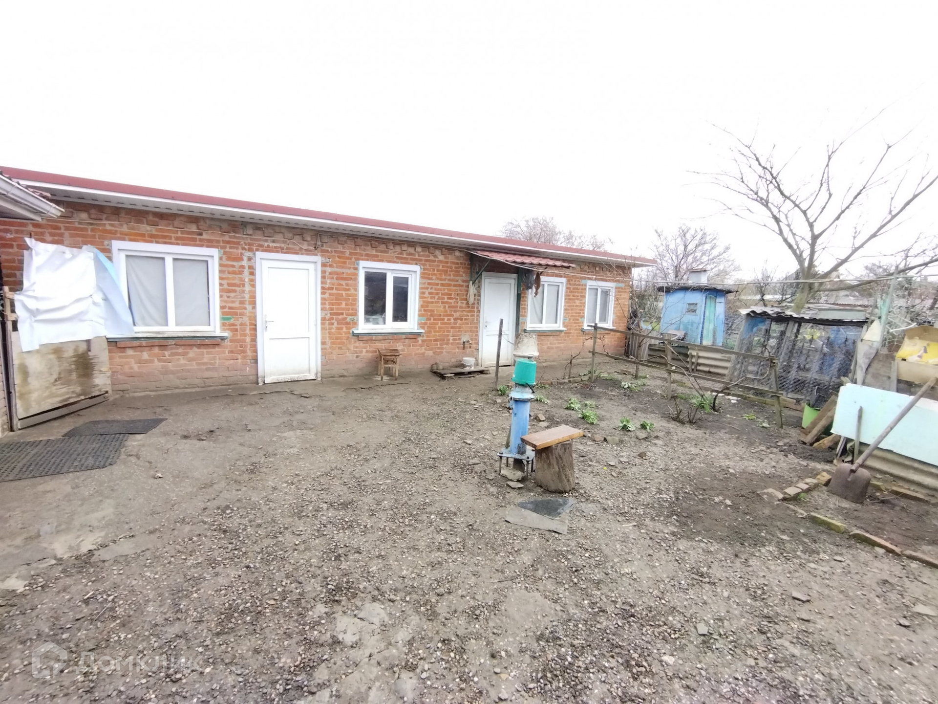 Материал стен — саман обложен кирпичом снаружи и оштукатурен внутри, есть пристройка кирпичная. Кровля из металлопрофиля.