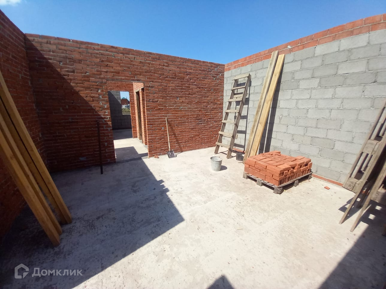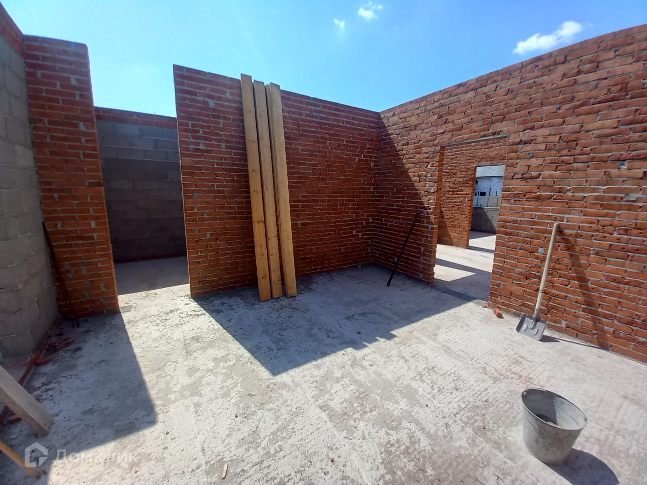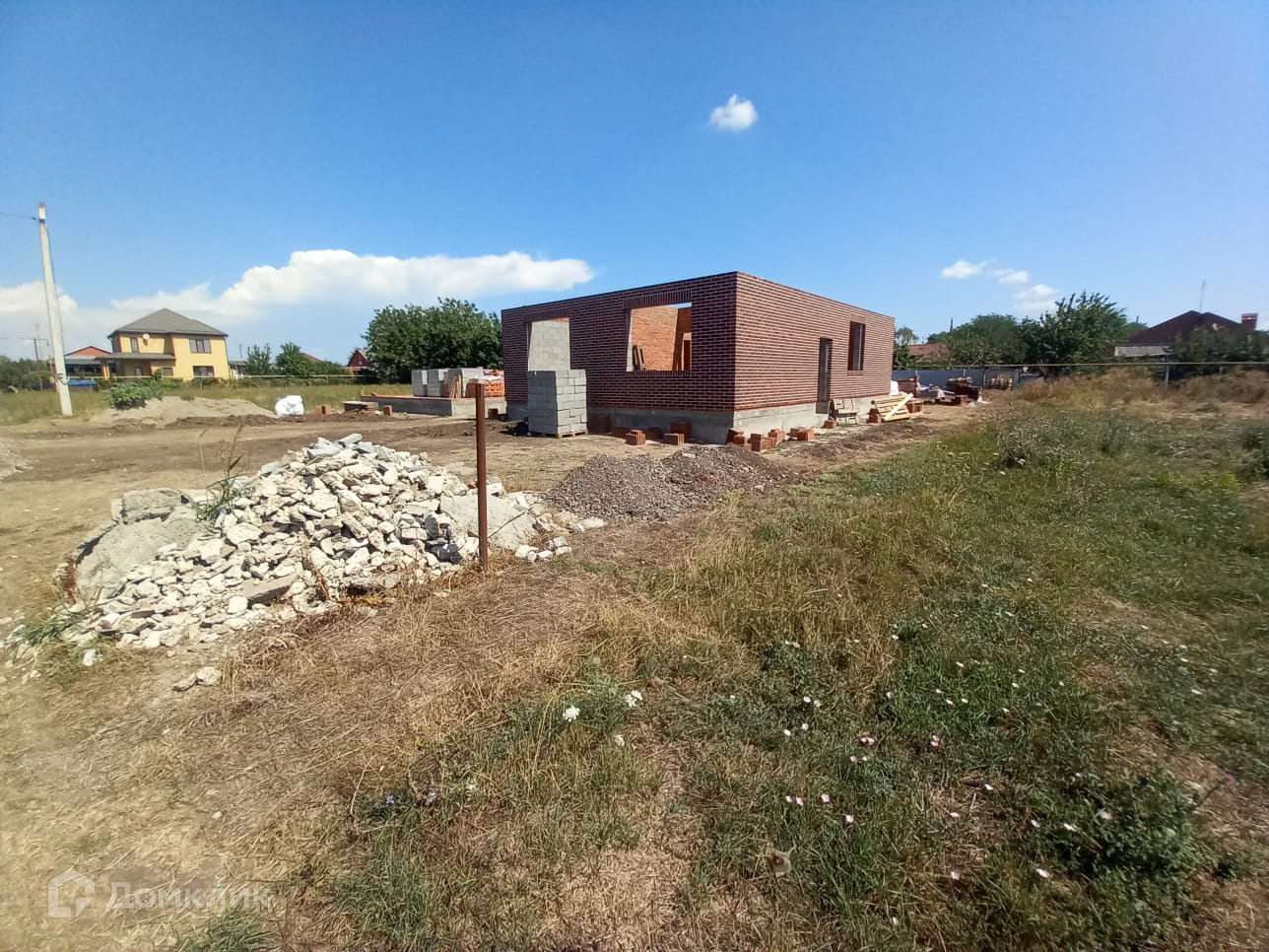 Новый жилой дом, 1 этаж, площадью 100 кв м, 2024 года постройки. Находится на этапе строительства. Стены наружные из шлакоблока, обложен кирпичом, перегородки кирпичные. Кровля из металлочерепицы.
