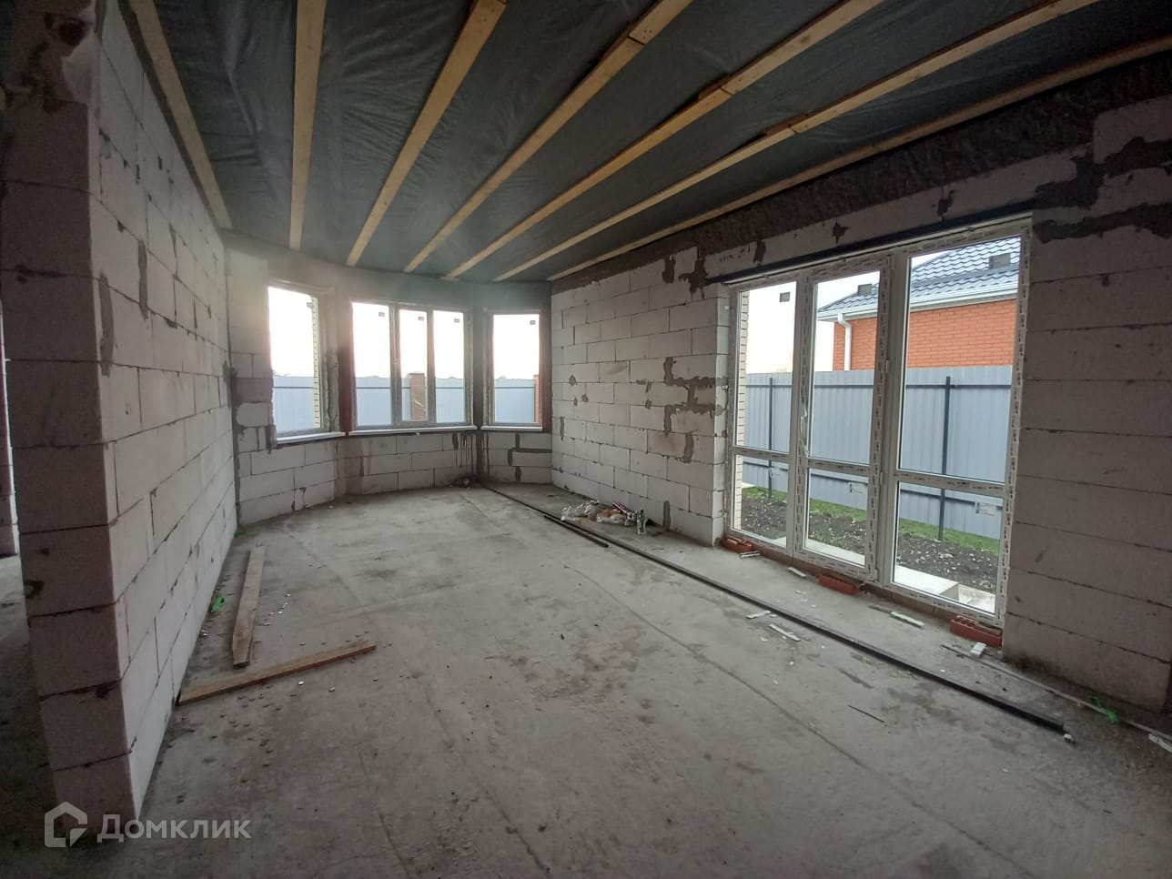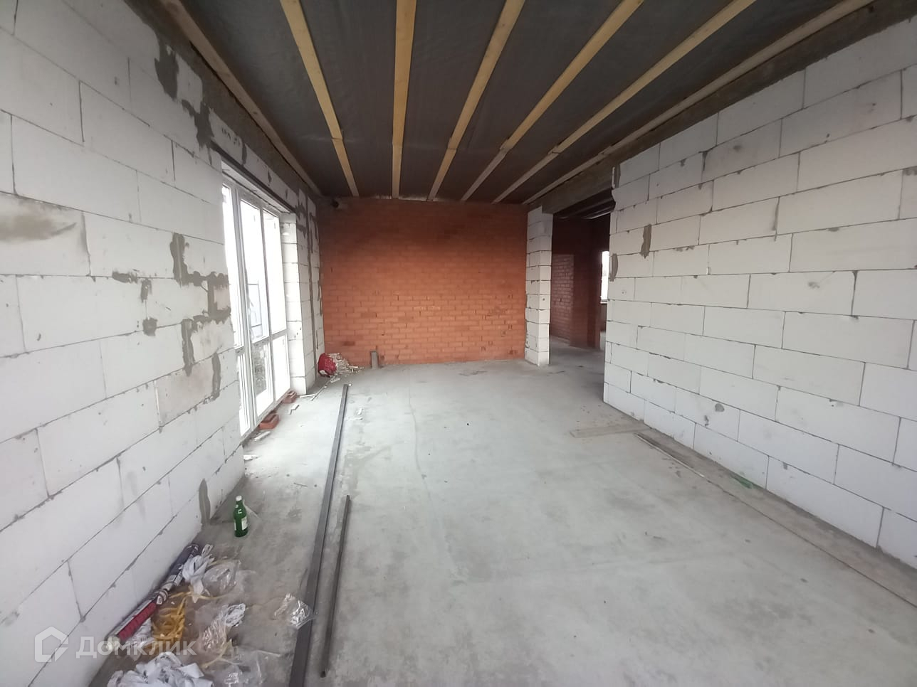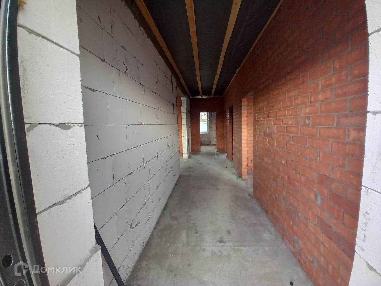 Дом 2024 года постройки. Материал стен — блок обложен кирпичом. Кровля — металлочерепица. Окна из металлопластика. Фундамент свайно-ростверковый, с монолитно-армированной плитой. Дом до завершающего состояния предчистовой отделки будет доведен в декабре 2024.