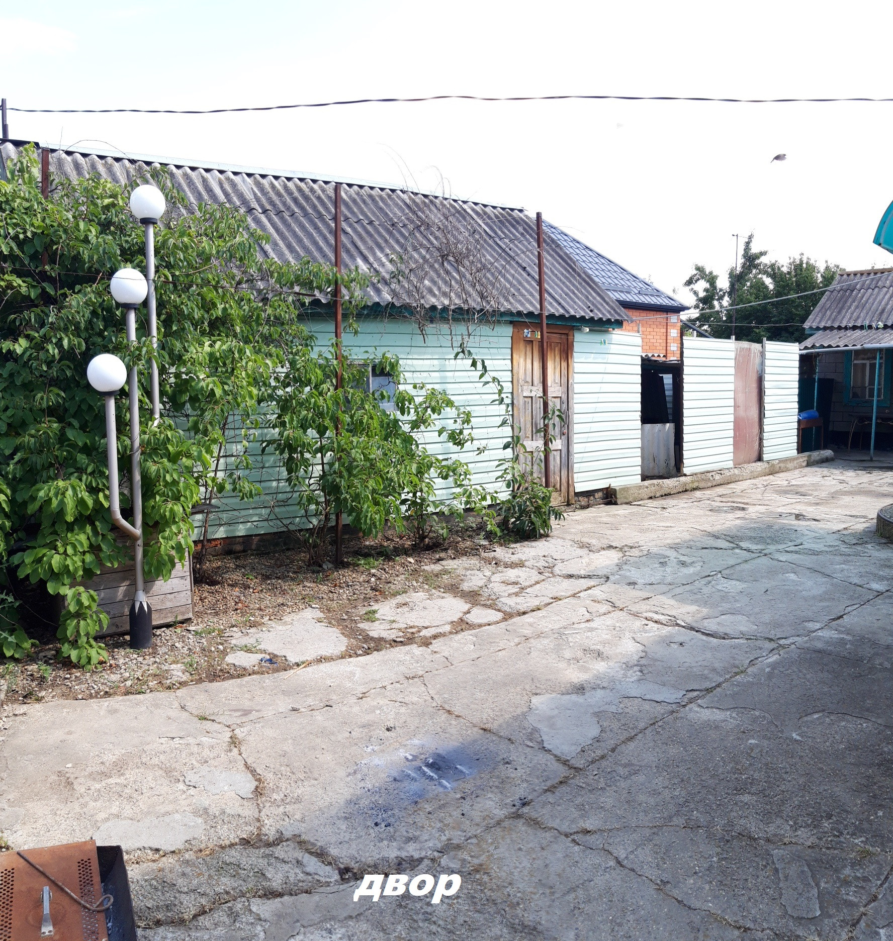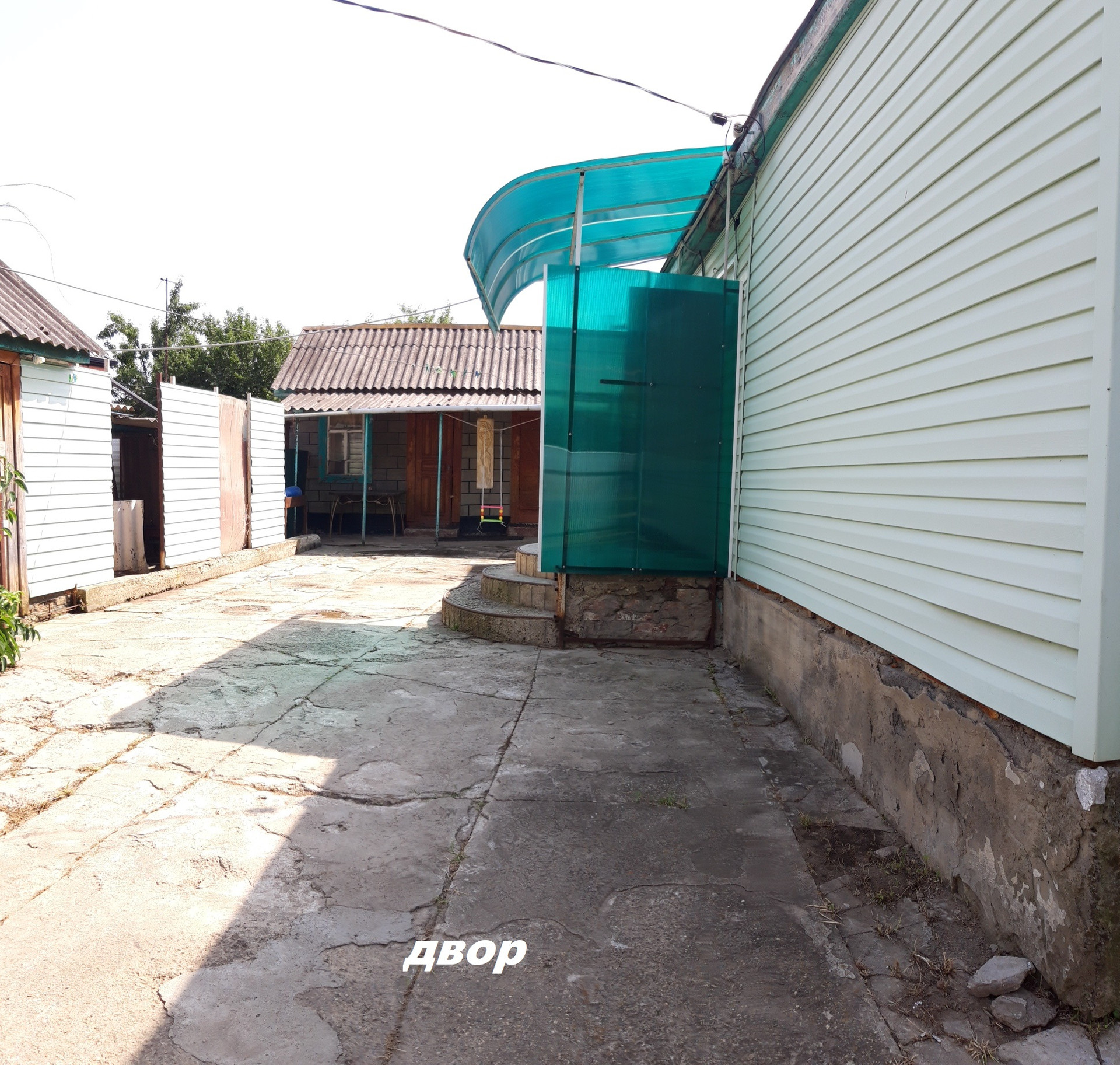 Лицевая сторона (Фасад 28 метров). Двор бетон. Забор профнастил.
