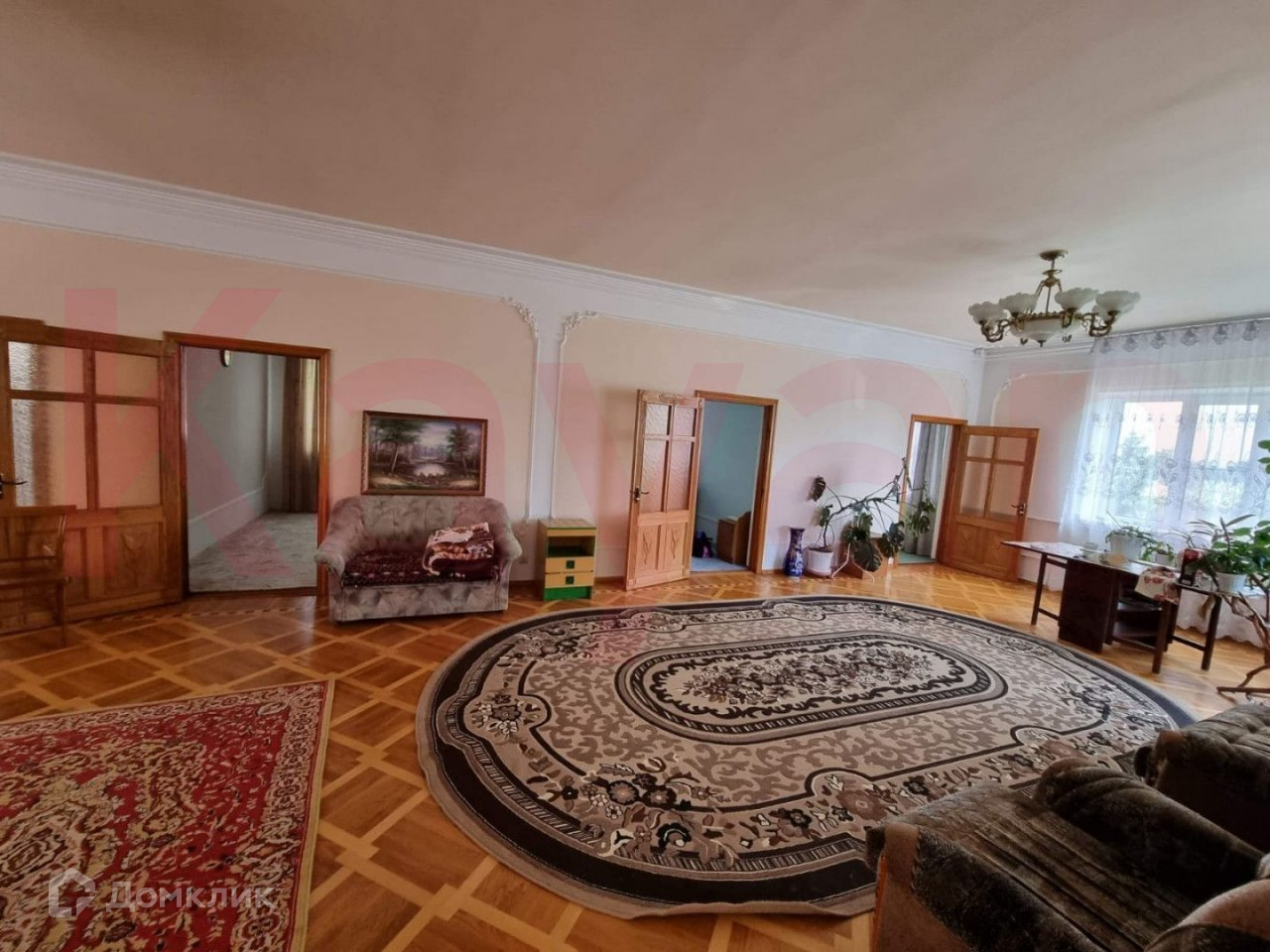 На обоих этажах полы покрыты паркетом (кроме сан. узлов), двери все деревянные ручной работы. На стенах лепнина, покраска. Добротная деревянная лестница ведущая на 2й этаж. Окна пластиковые, широкие деревянные подоконники. На парадном входе первые двери железные с остеклением, вторая деревянная. Чёрный вход - дверь металлическая, утеплённая. Отопление газовое, центральное водоснабжение в доме, на улице скважина, электричество 3х фазное, канализация. Телевидение - Триколор. Видеонаблюдение, дом находится под охраной "НЕВА".
