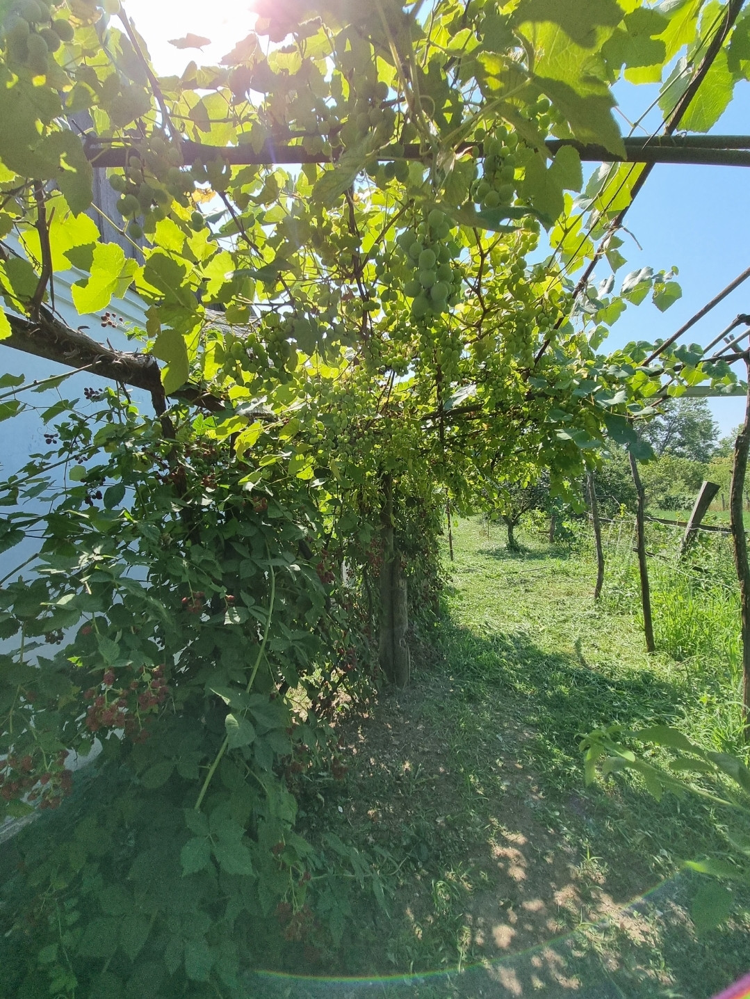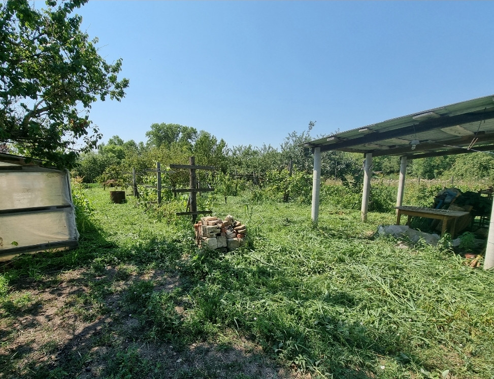 На участке много плодовых деревьев, орешники, виноградники, ежевика, смородина, малина, клубника, полисадник с цветами.