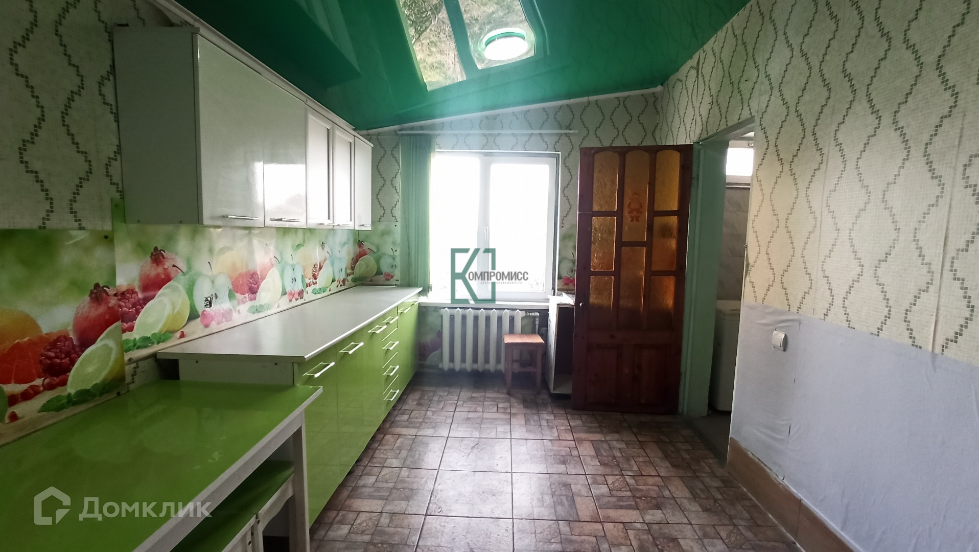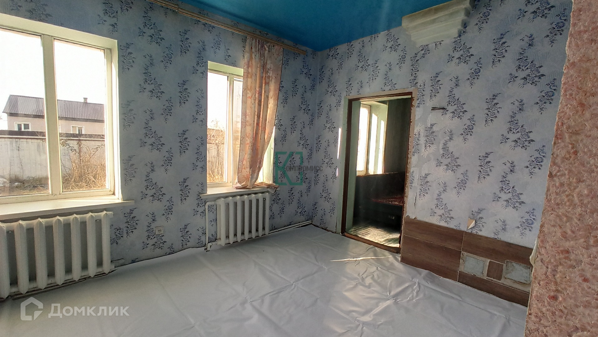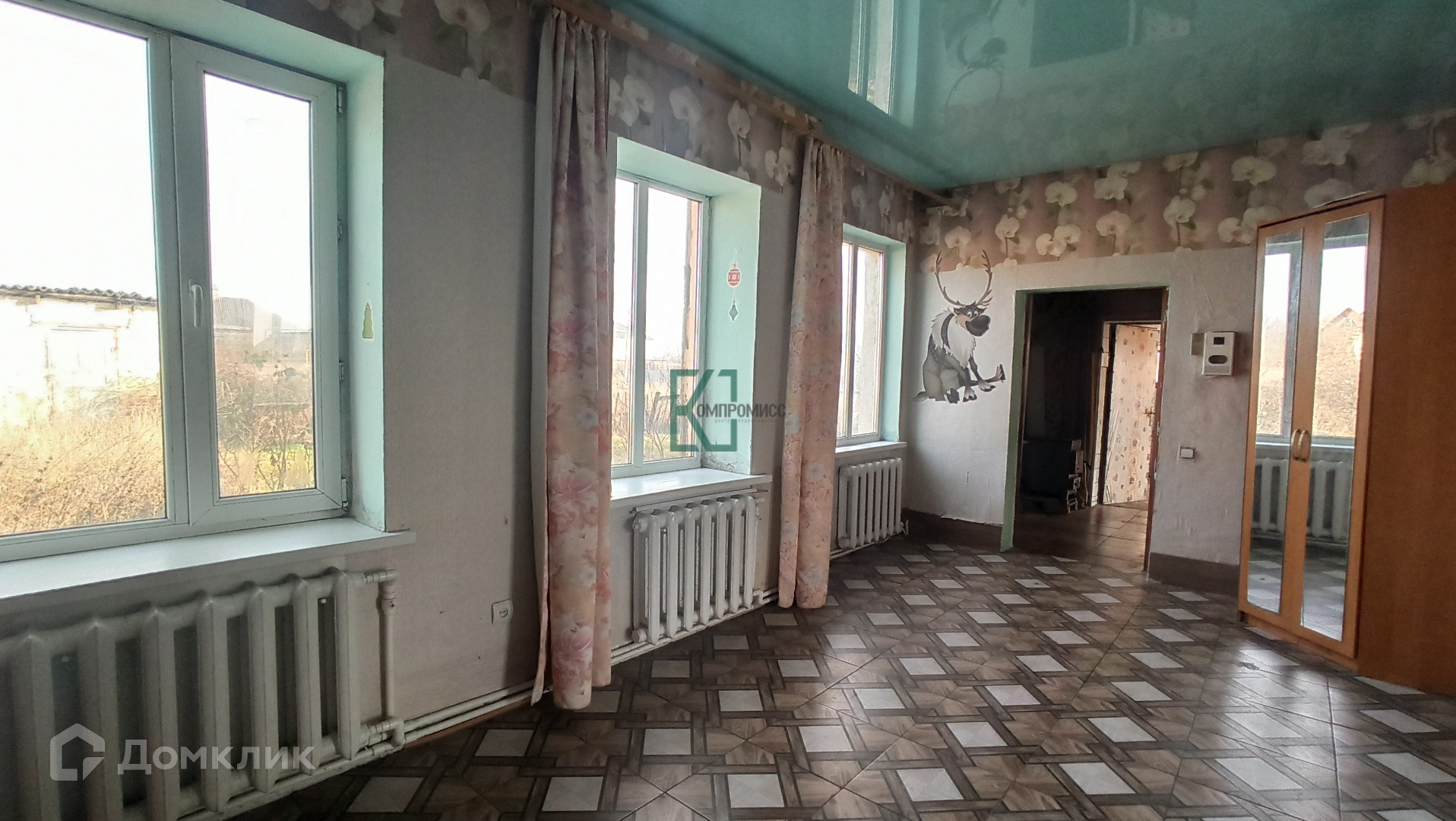Окна в доме металлопластиковые. Полы: плитка и ламинат, стены: обои.