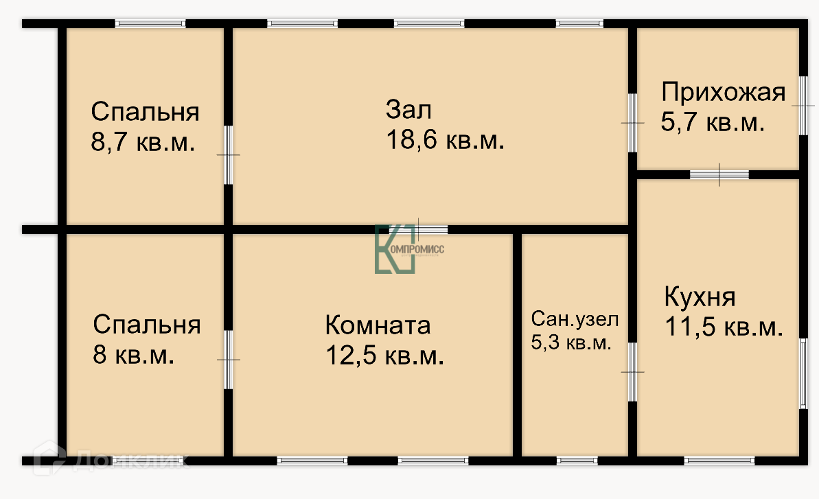 Общая площадь 70.3 м2