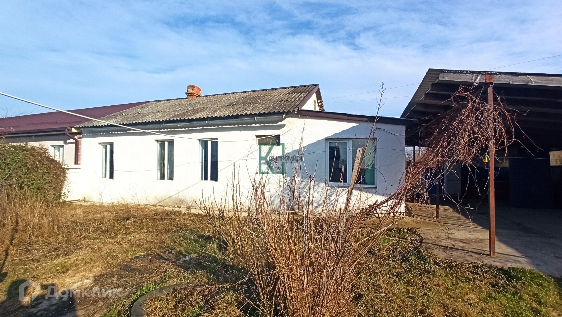 На участке имеется навес и бетонная площадка для авто.