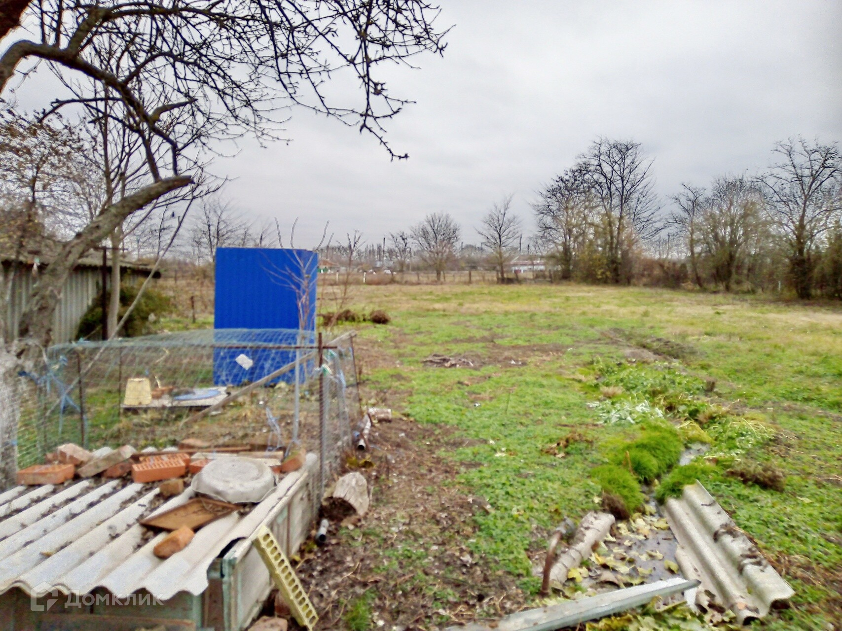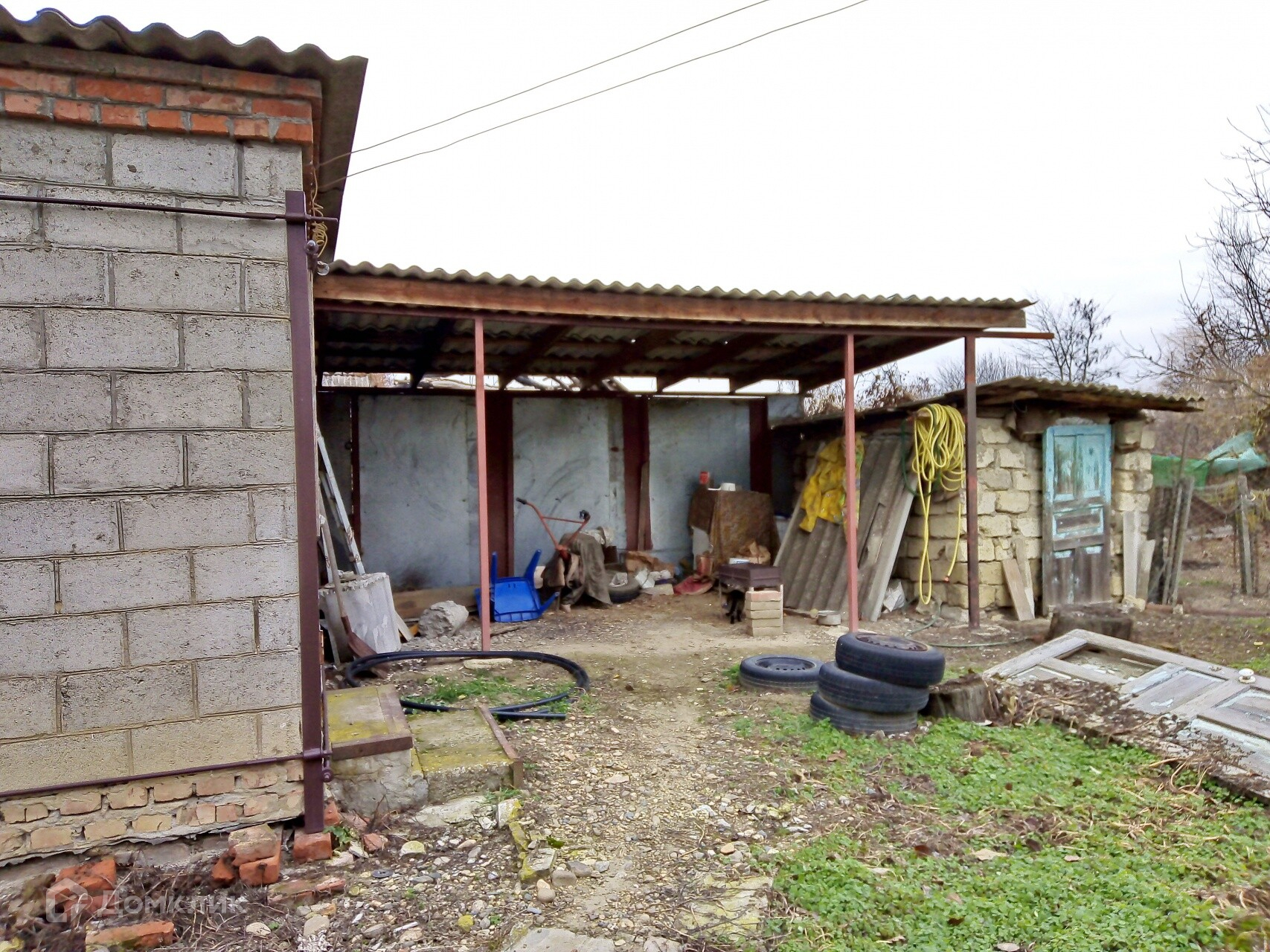 Земельный участок ровный, правильной формы, с плодородной землей. Длинный фасад. Есть блочный гараж, небольшой навес, хозпостройки.