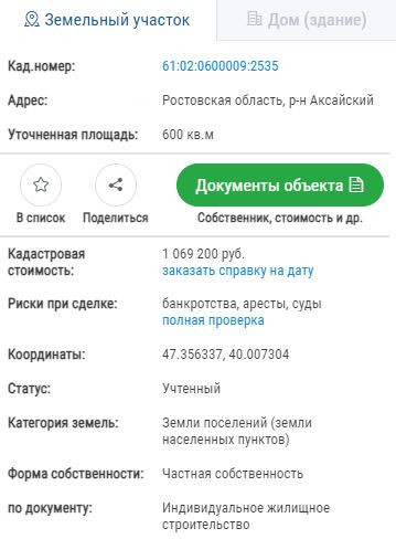 Кадастровый номер 61:02:0600009:2535