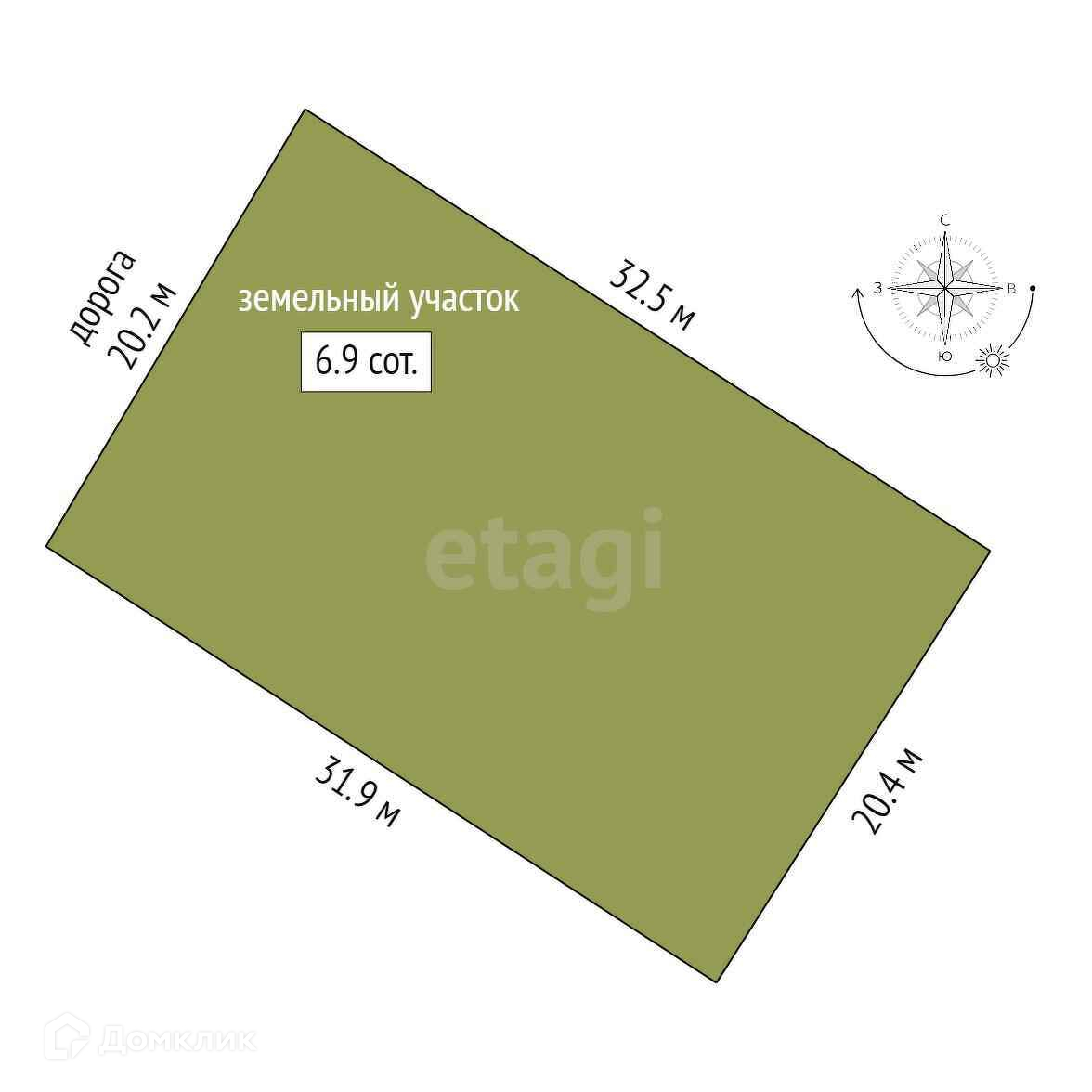 Площадь участка 6.9 сот.